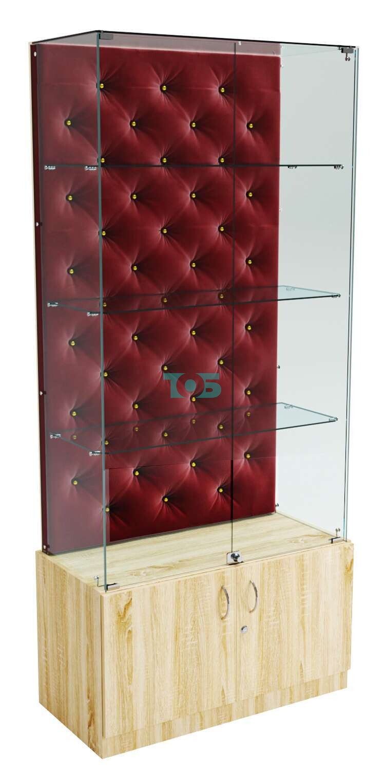 в нижней части витрины расположен накопитель из ДСП высотой 500 мм с дверками и замком;