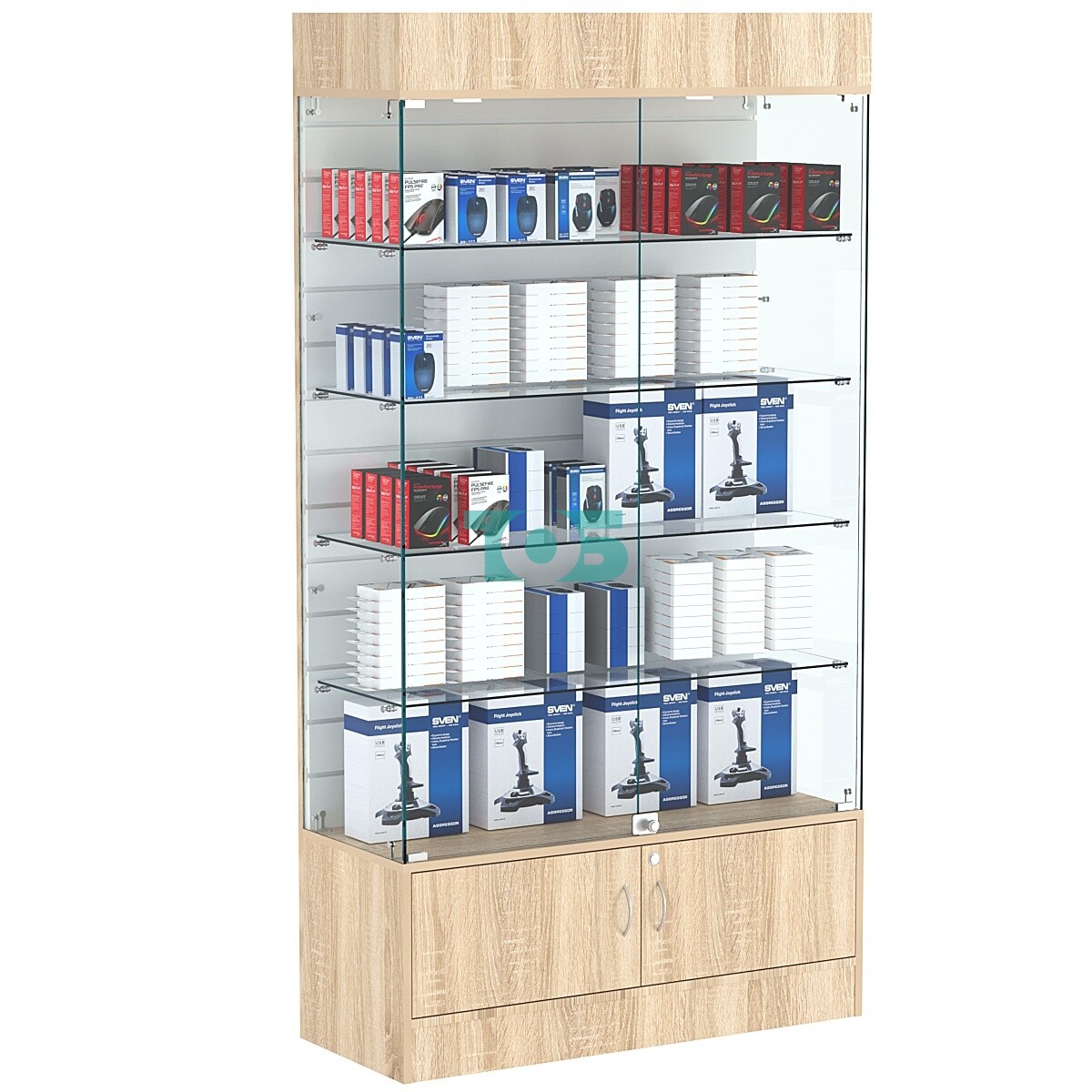 Отличия модели витрины широкой со стеклянными полками для салона связи №1: