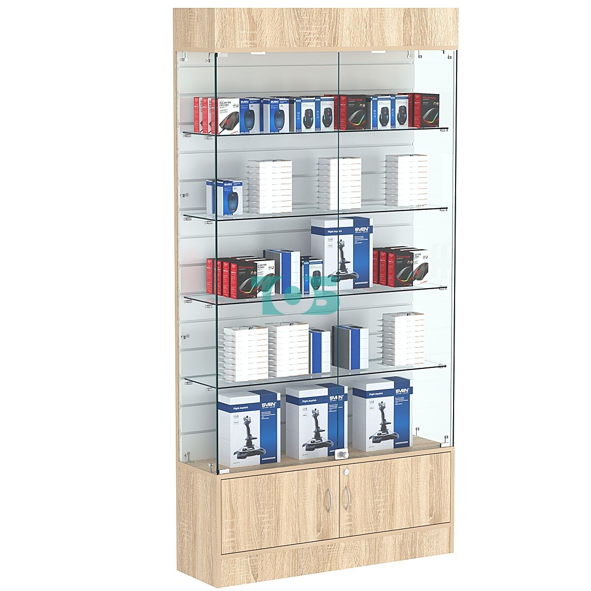 - в прозрачной части витрины - распашные стеклянные дверки с замком;