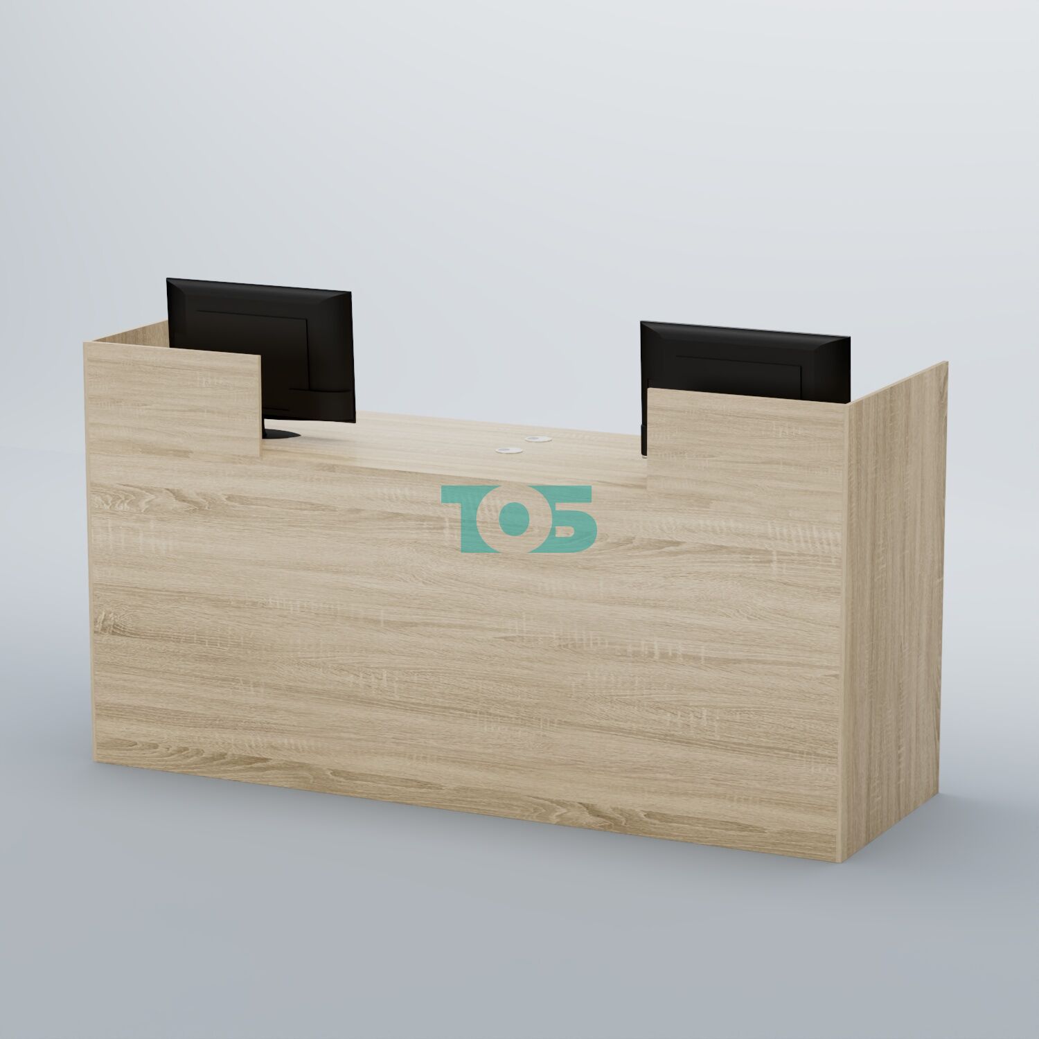 Высота торцов ресепшена и секций, закрывающих мониторы, — 1300 мм.
