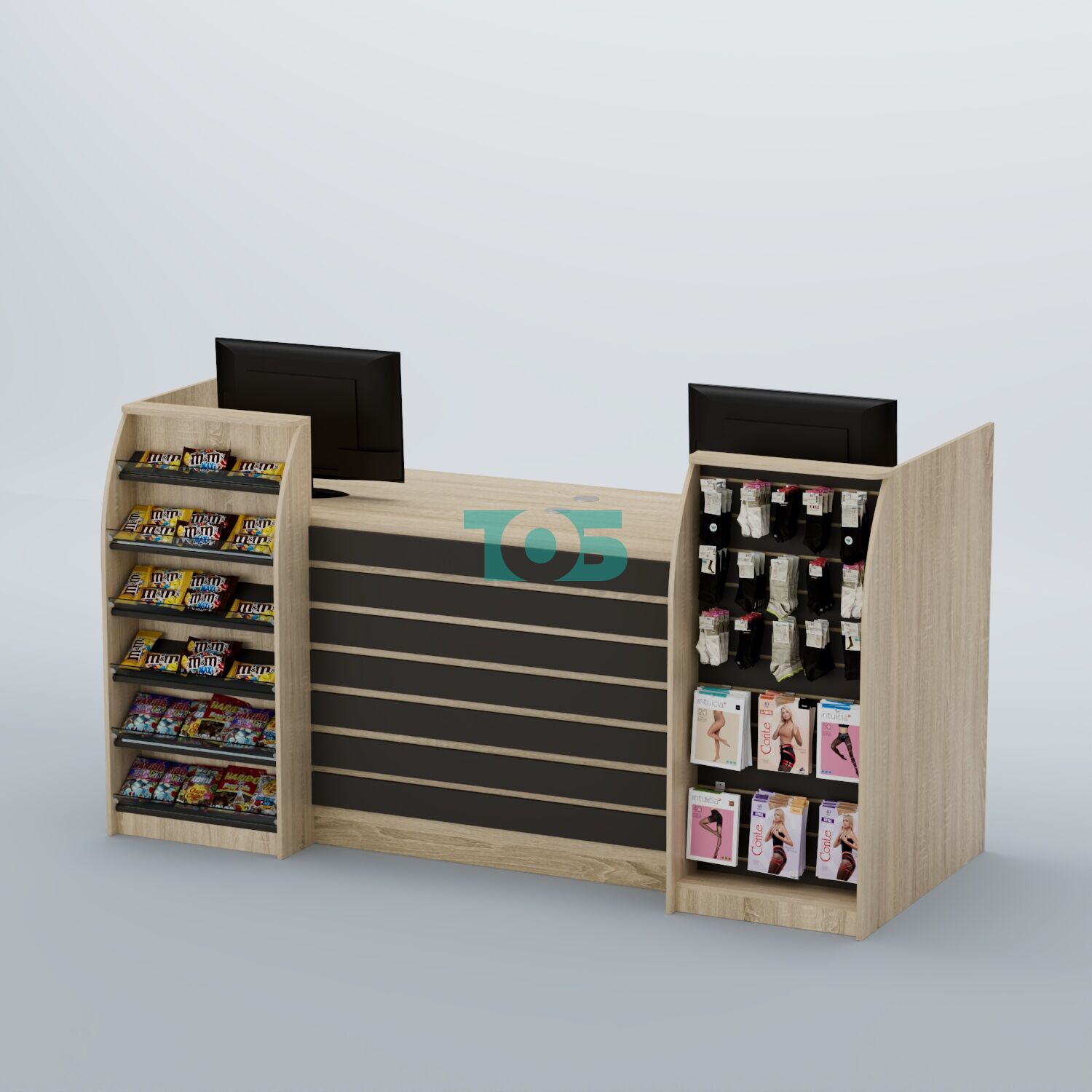 Ресепшен Атлант с накладными планками, наклонными полками и экономпанелью №9 — это новейшее воплощение современного дизайна и практичности в мире мебельных решений для торговых точек. Разработанная с учетом потребностей современных магазинов и опыта нашей компании, эта модель представляет собой идеальное сочетание стиля и функциональности, что делает её незаменимой для магазинов одежды, обуви, косметики, парфюмерии, постельного белья и подарков.