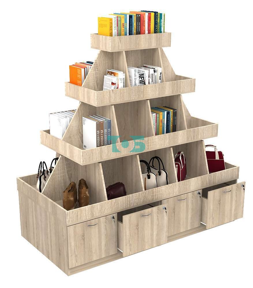 - корзина для распродаж с разделителями разработана для установки в центре торгового зала универсальных магазинов и служит для продаж любых видов товаров - кожгалантереи, книг, игрушек, одежды, канцтоваров, посуды и многого другого. Ступенчатая конструкция корзины включает четыре яруса, каждый из которых поделен на равные по ширине части и ограничен бортиком. Это позволяет производить зонирование, размещая в одной корзине сразу несколько типов товаров;