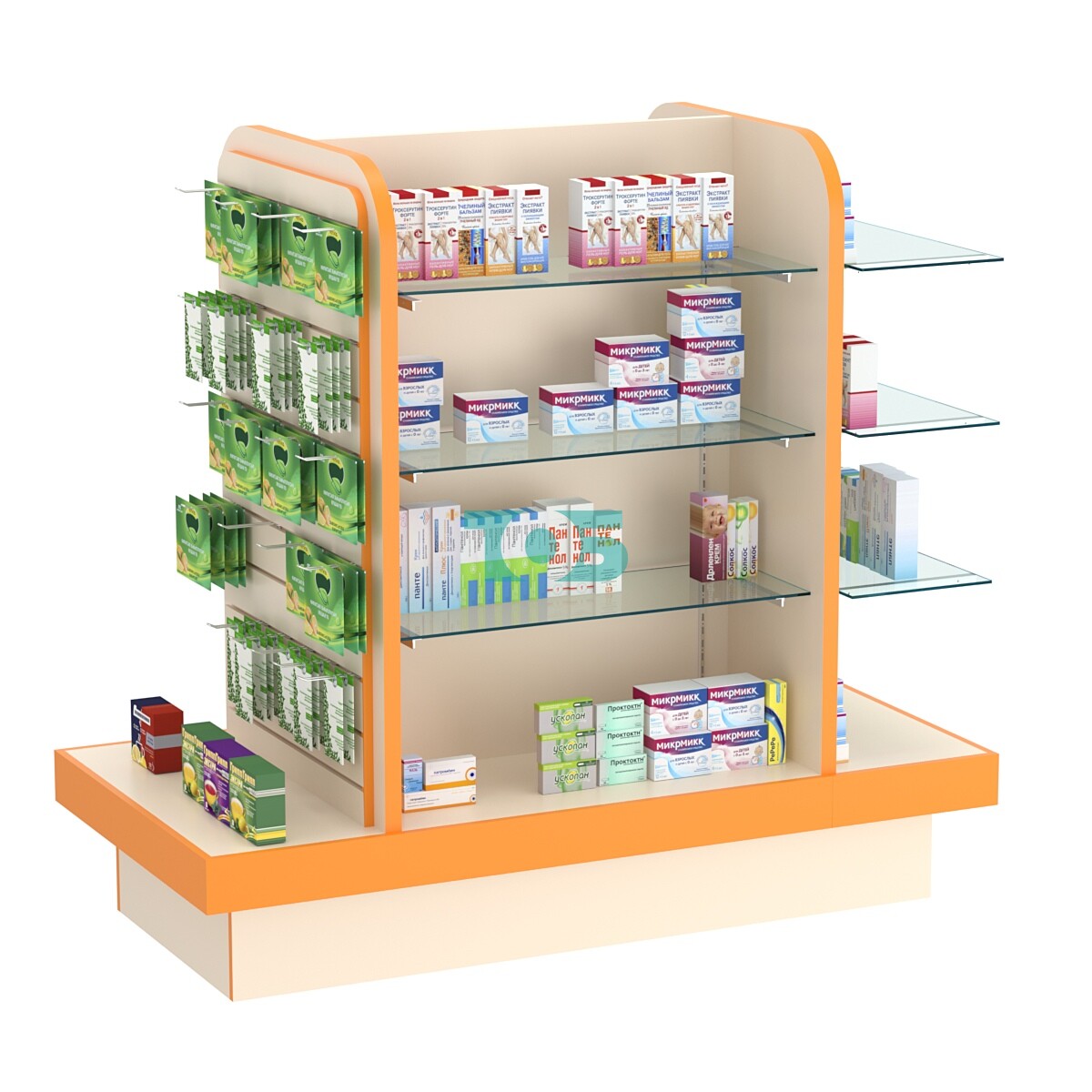 Островная система ФАРМА №2 создана для обеспечения максимальной эффективности и комфорта в работе аптек. Она объединяет центральный модуль и два торцевых модуля, каждый из которых имеет свои особенности, что позволяет создавать многофункциональное рабочее пространство, соответствующее всем современным стандартам.