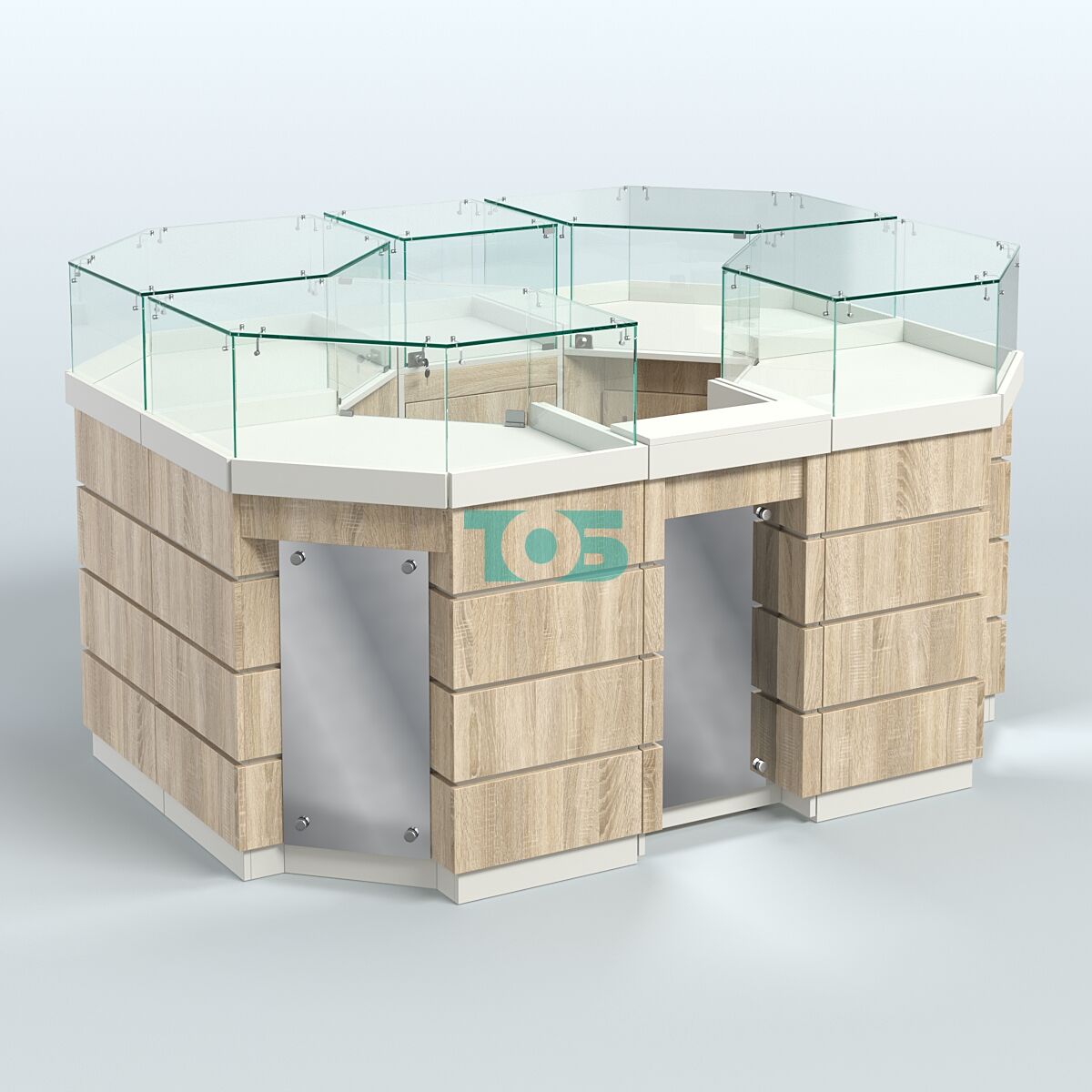 - островок удобен в использовании и включает все необходимое для начала торговли, а модульный принцип позволяет при изменении торговой площади добавлять или убирать необходимое количество модулей;