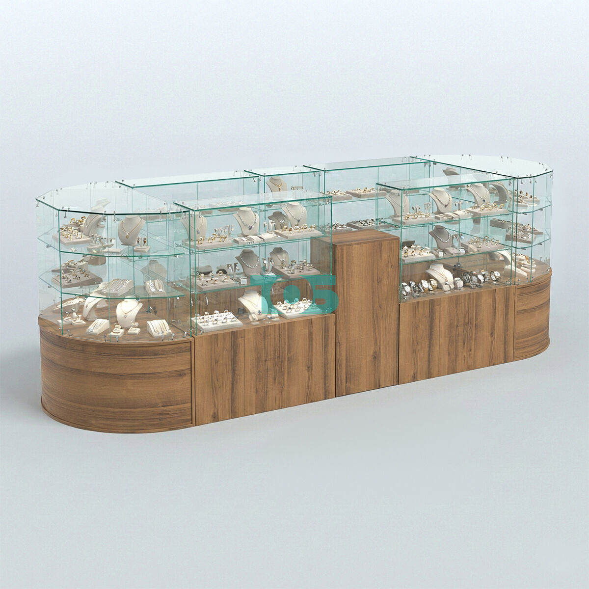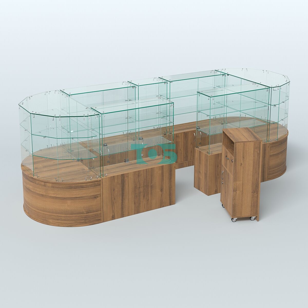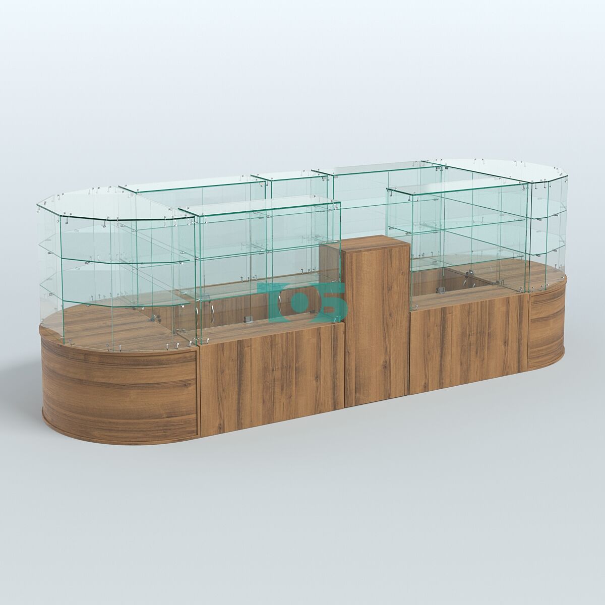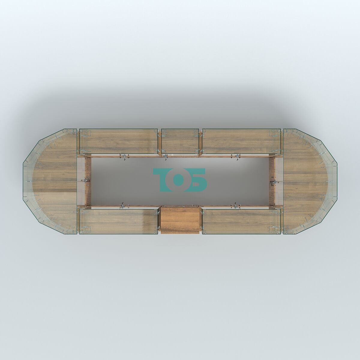 • Круглый стеклянный островок-павильон серии КОЛЬЦО вытянутый №3, Орех