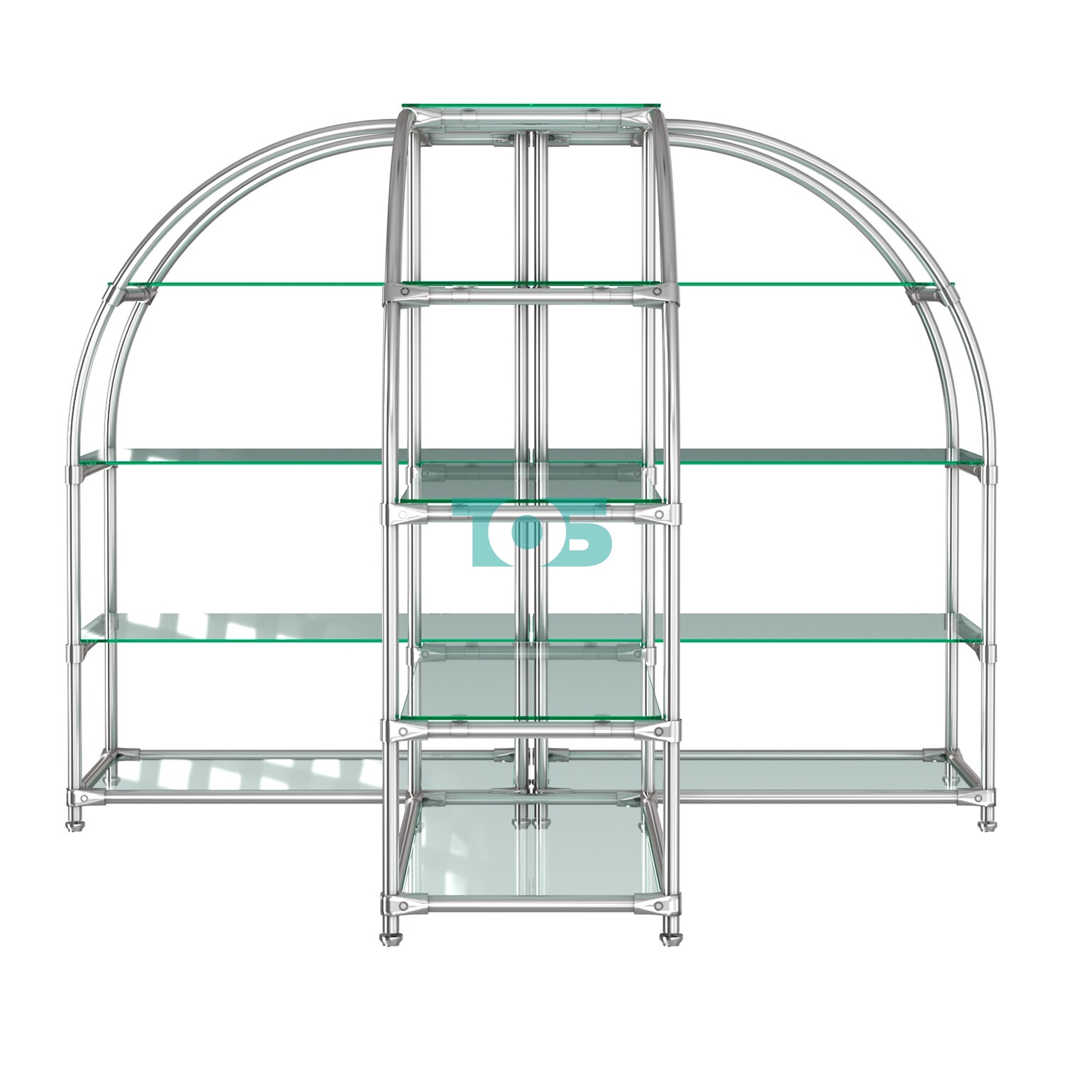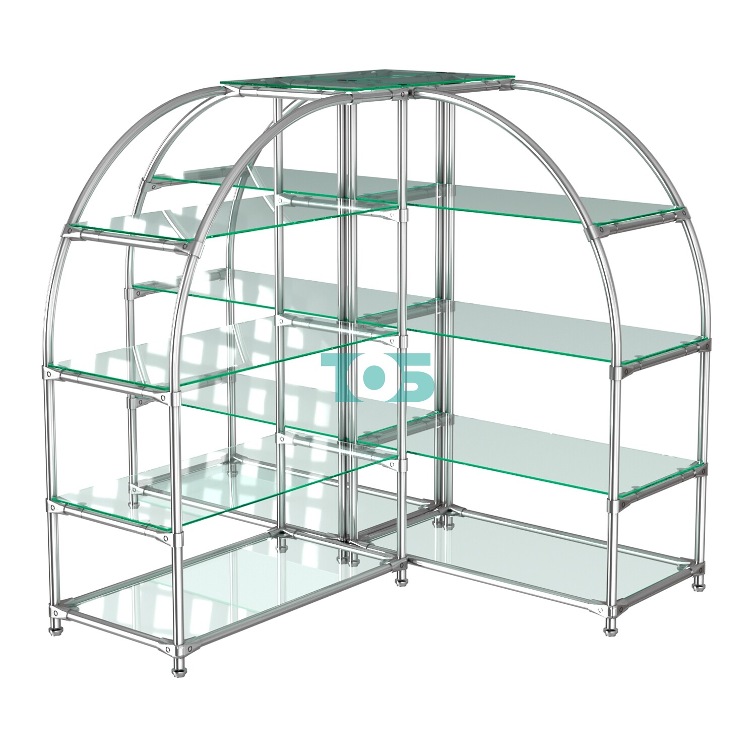 Пятнадцать полок из стекла толщиной 6 мм: Прочные и устойчивые полки, которые визуально не перегружают пространство и позволяют товарам быть в центре внимания.