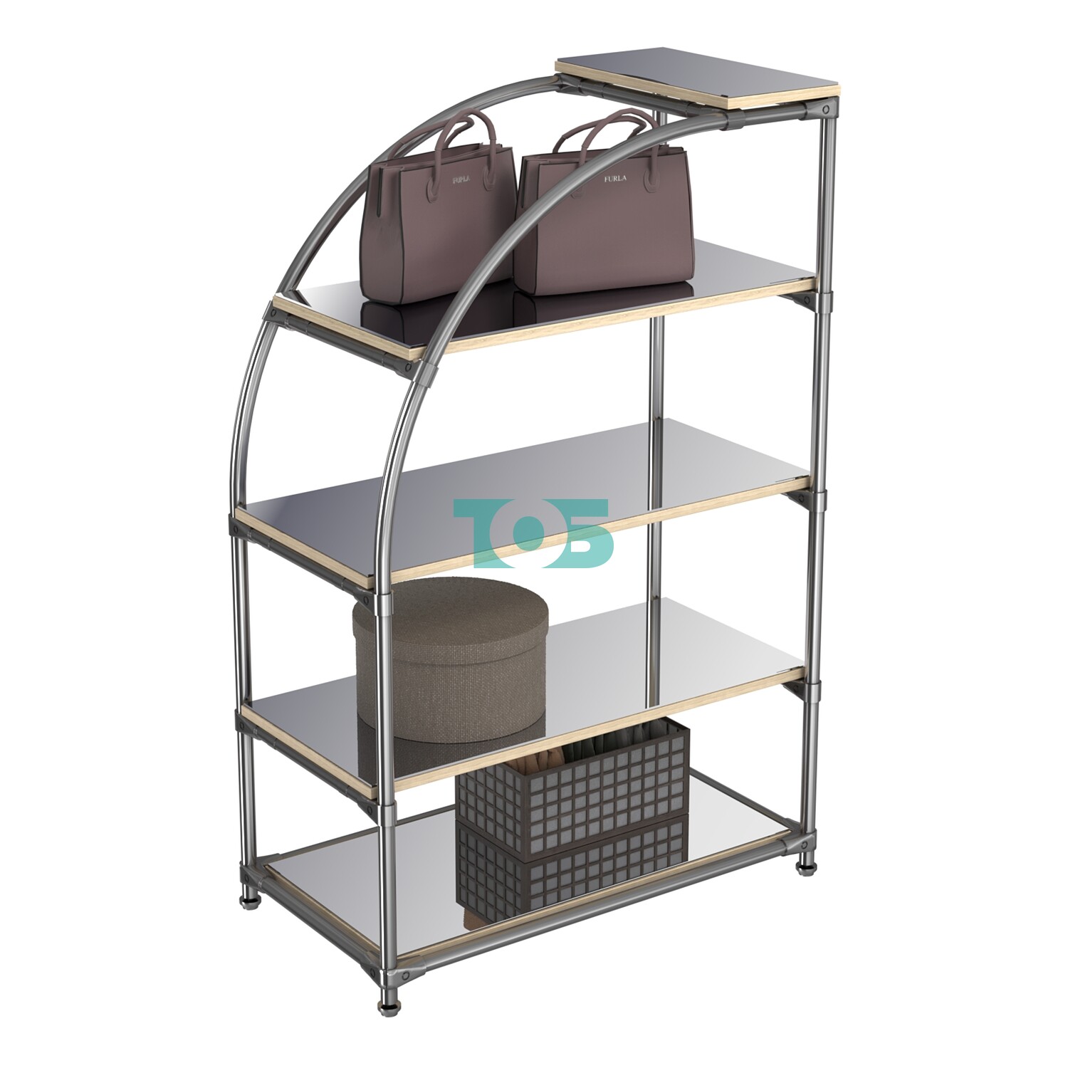 Хромированный стенд универсальный TD-06 (Т) с полками из зеркала 4 мм — это инновационное и стильное решение для торговых пространств, стремящихся создать эффектный и функциональный интерьер. Этот стенд сочетает в себе элегантность зеркальных поверхностей и практичность полок из ДСП, обеспечивая максимальную видимость и доступность товаров.