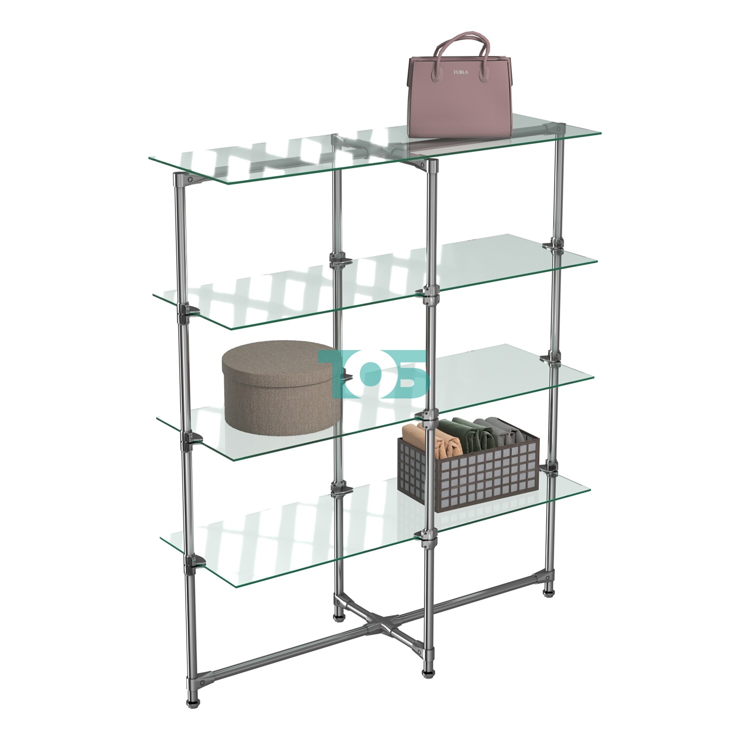 Четыре прозрачные полки из стекла 6 мм: Прочные стеклянные полки толщиной 6 мм, которые выдерживают значительные нагрузки и выглядят эстетично.