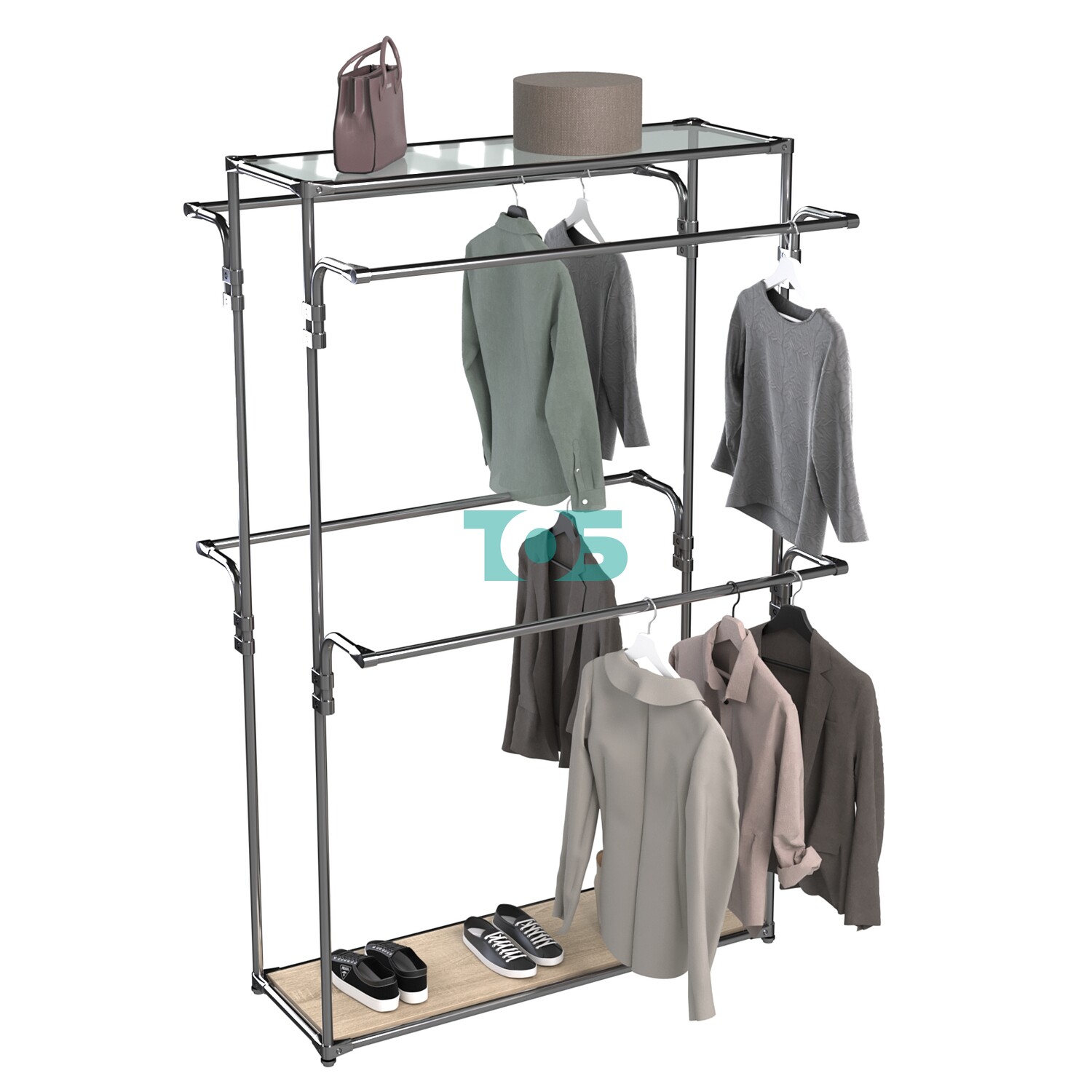 • Два выносных усиленных поручня: Предназначены для тяжелой одежды больших размеров, регулируются по высоте, что позволяет оптимально использовать пространство для размещения различных видов одежды.