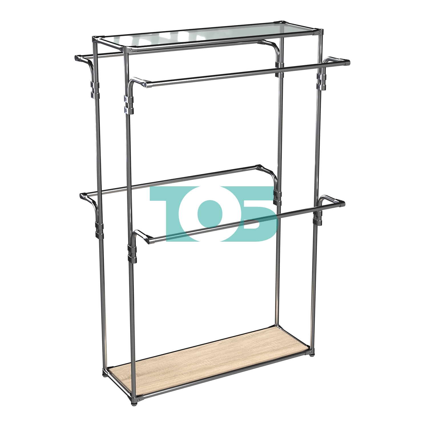 • Высокое вешало: Обеспечивает максимальное использование вертикального пространства, что особенно удобно для магазинов с ограниченной площадью.