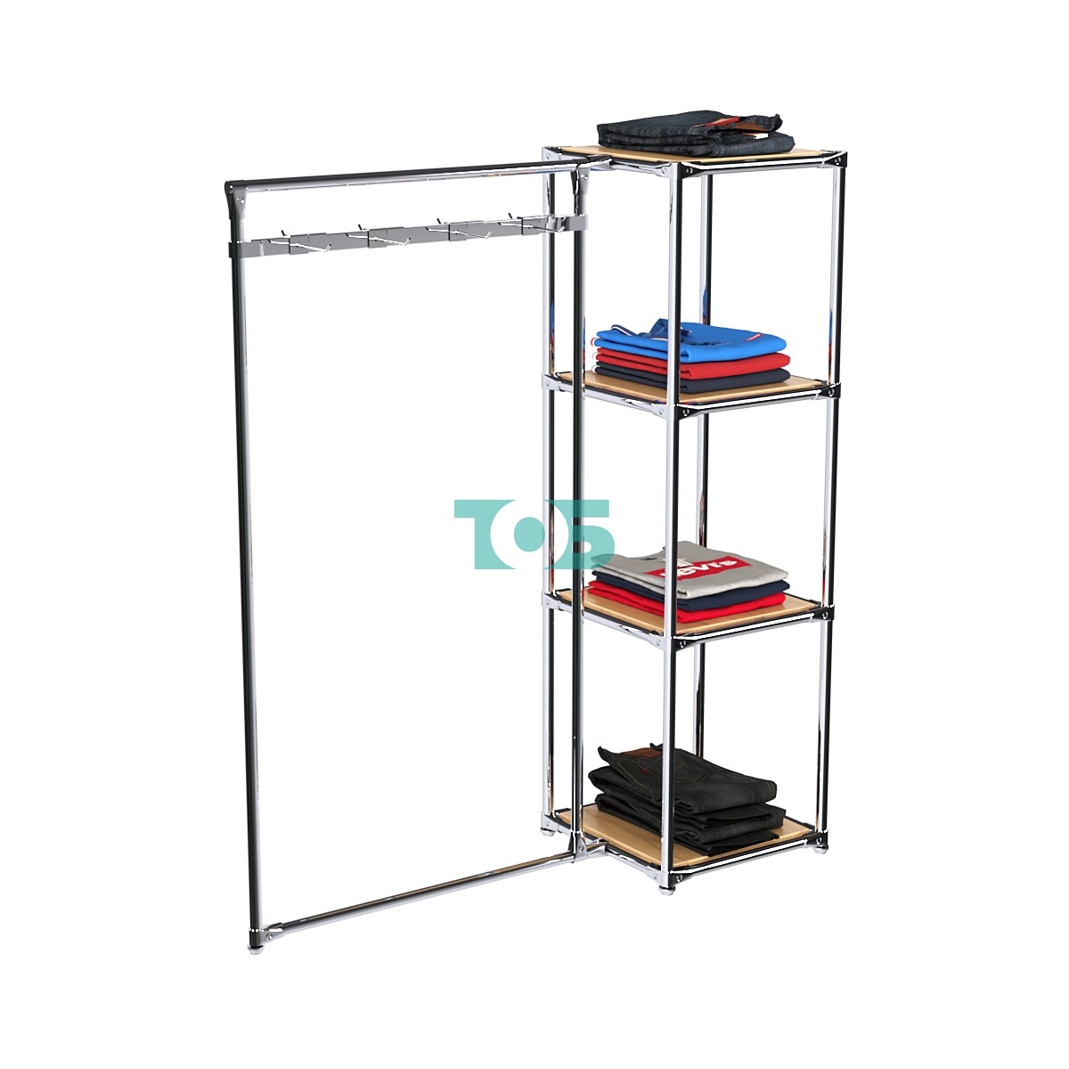 Регулируемые по высоте полки: Позволяют адаптировать вешало под различные размеры товаров, обеспечивая оптимальное использование пространства.