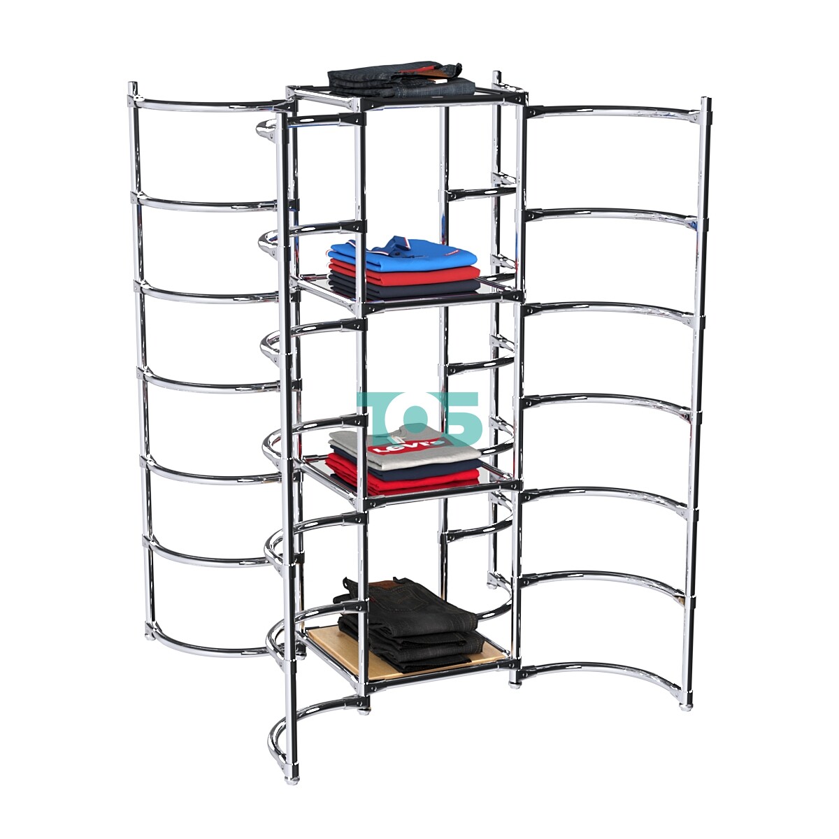 Четыре хромированные штанги с четырех сторон: По семь дуг в каждой, обеспечивают удобное позиционирование малогабаритных товаров.