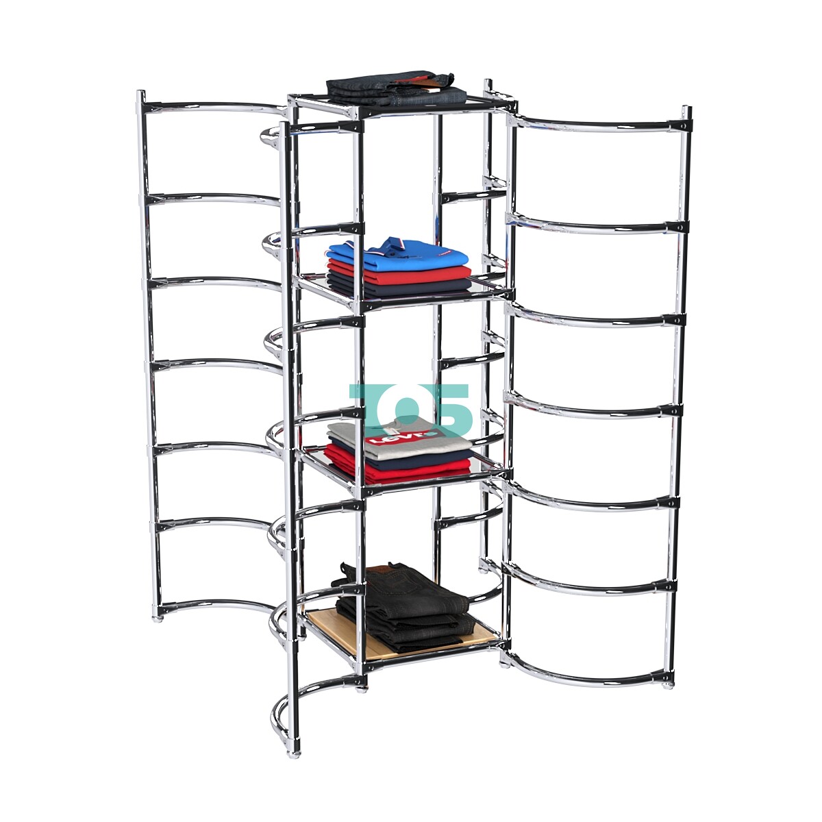 Четыре хромированные штанги с семью дугами: Позволяют удобно размещать товары с закруглением по часовой стрелке, направление можно изменить на обратное.