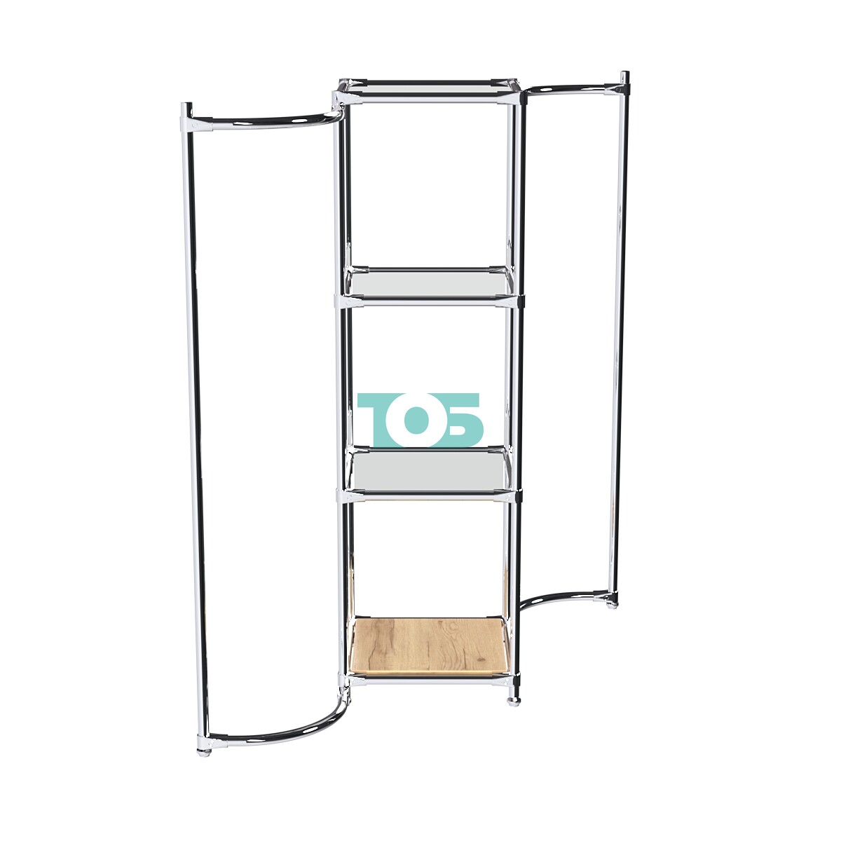 Дугообразные хромированные штанги для плечиков: Расположены в правом и левом крыле конструкции, обеспечивают удобное размещение одежды на плечиках.