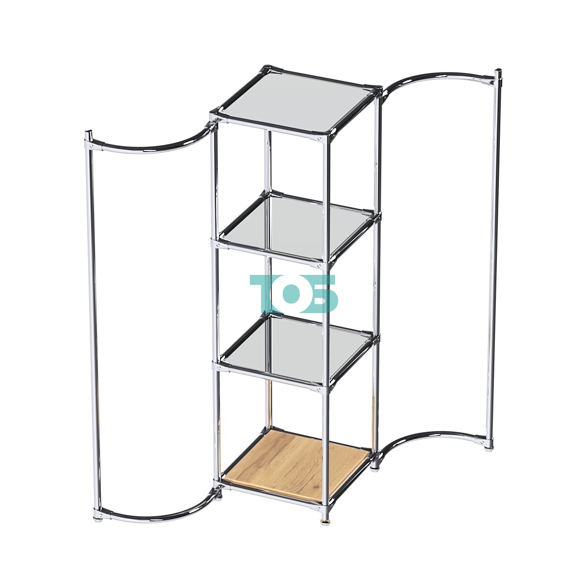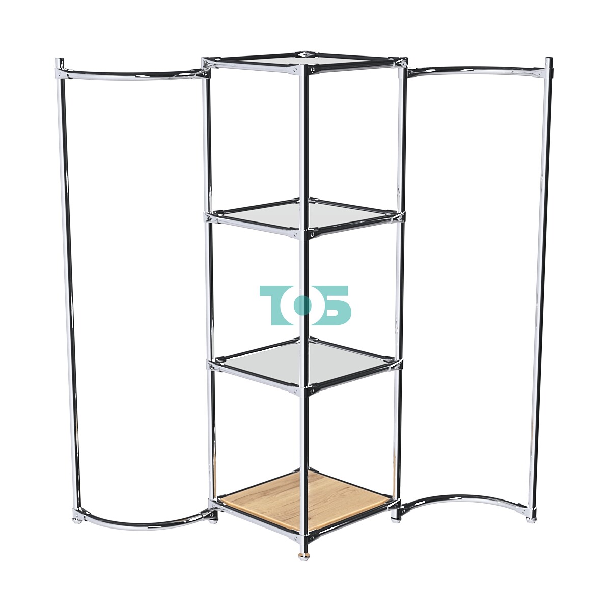Две зеркальные полки 4 мм: Легкие и элегантные, визуально расширяют пространство и добавляют изделию изысканность. Зеркальные полки позволяют размещать дополнительные товары, такие как аксессуары или небольшие предметы одежды.