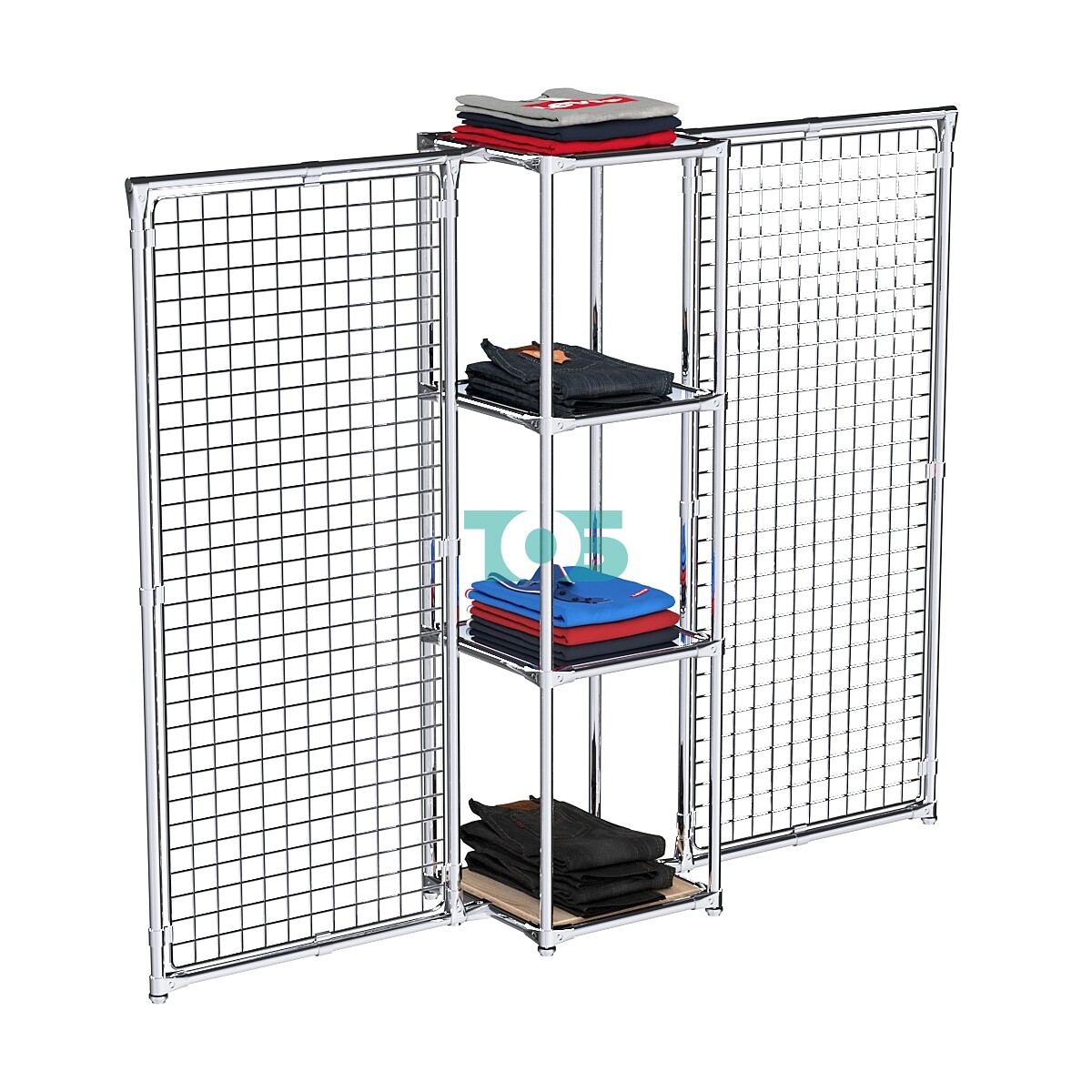 Хромированные решетки: В левом и правом крыле конструкции расположены решетки, на которые можно навешивать крючки, кронштейны или корзины, расширяя функциональность вешала.