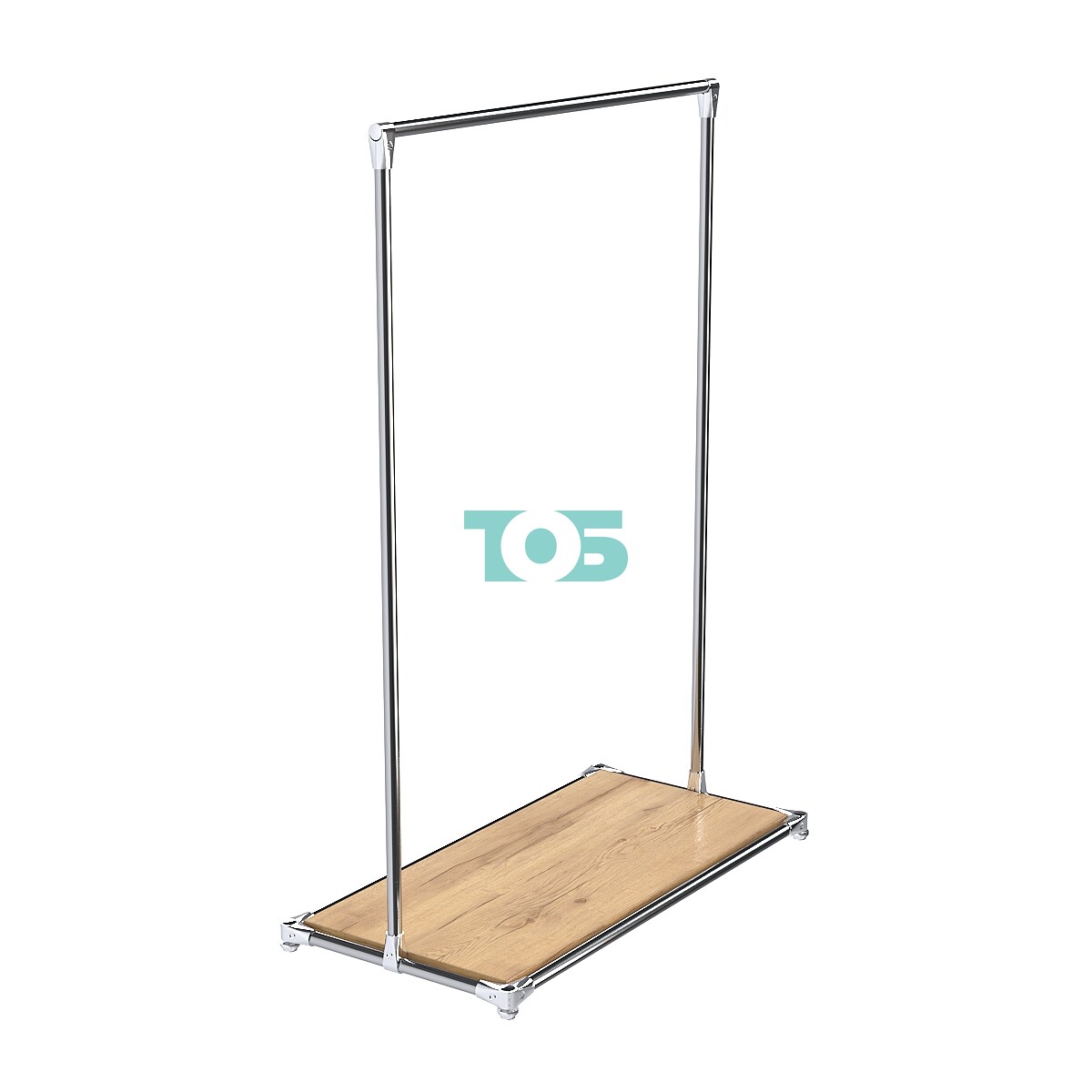 Хромированный стенд-вешало TD-09 №1-3 ДСП 16 мм с нижней платформой из ДСП 16 мм — это универсальное и стильное решение для экспонирования, демонстрации и продажи различных видов одежды. Благодаря своей конструкции и возможности выбора цвета платформы, он легко вписывается в любой интерьер торгового зала.