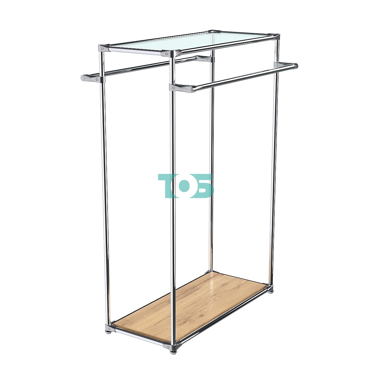 Хромированный стенд-вешалка TD-38 №1-1 с полкой из прозрачного стекла 6 мм является отличным выбором для магазинов, специализирующихся на продаже одежды различных типов. Этот стенд обеспечит максимальный обзор товара, удобство в использовании и возможность индивидуальной настройки, что делает его незаменимым элементом вашего бизнеса. Возможность добавления полок и выбора дополнительных элементов позволяет создать оптимальное решение для демонстрации вашей продукции.