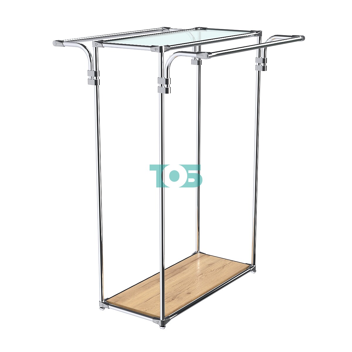 Хромированный стенд-вешалка TD-11 №1-1 с полкой из прозрачного стекла 6 мм является отличным выбором для магазинов, специализирующихся на продаже крупной и тяжелой одежды. Этот стенд обеспечит максимальный обзор товара, удобство в использовании и возможность индивидуальной настройки, что делает его незаменимым элементом вашего бизнеса.