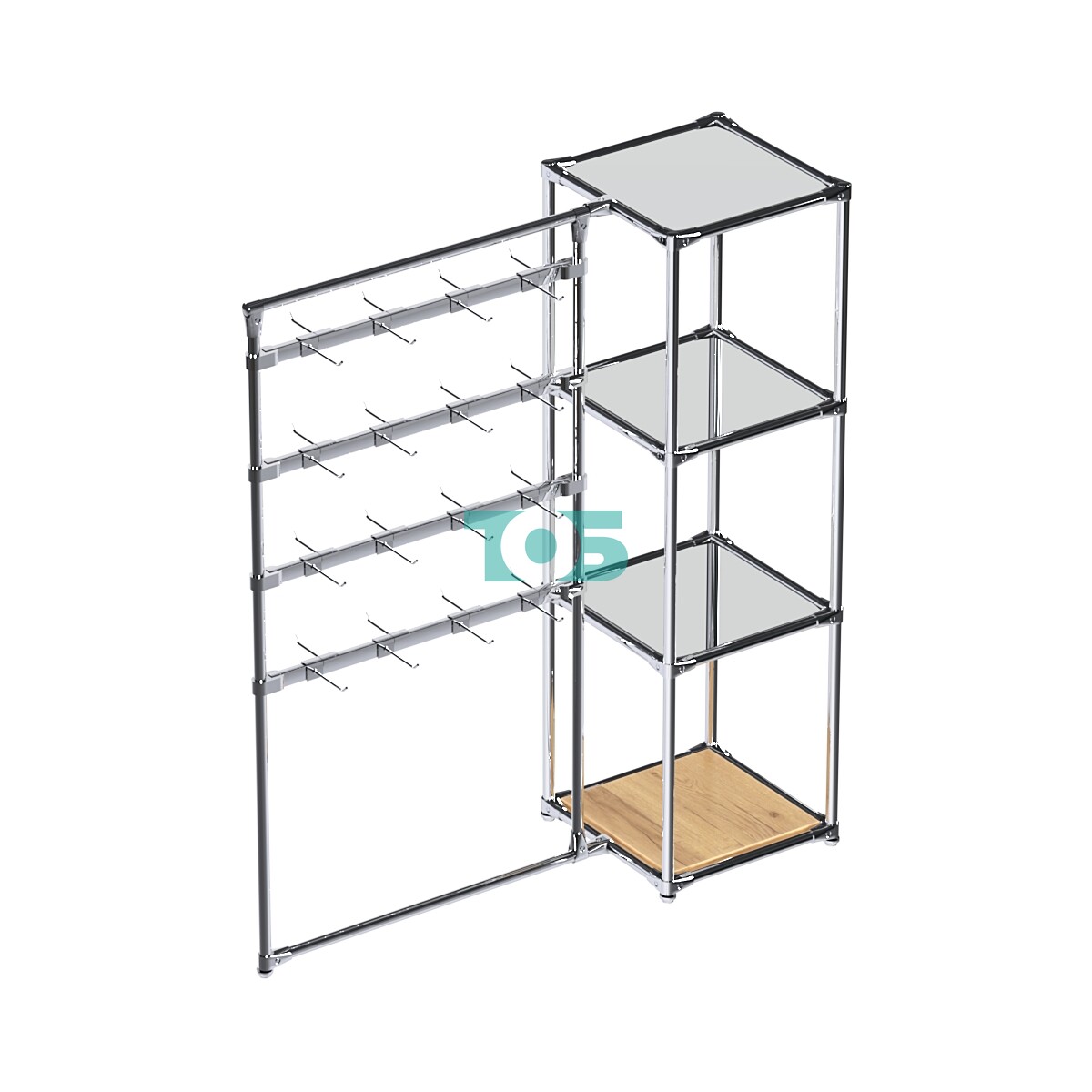 Хромированное вешало ШТАНГА №1-4 с полками и зеркалом – это идеальное сочетание стиля, функциональности и удобства. Такая система хранения поможет вам оптимально использовать пространство и поддерживать порядок. Создайте уют и комфорт в вашем доме с помощью этого универсального и практичного решения.