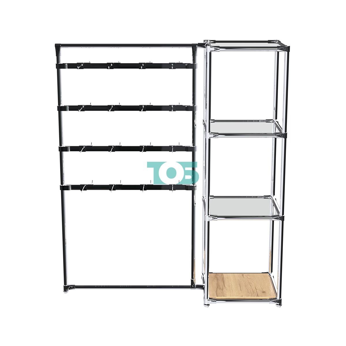Регулируемые штанги: Можно изменять высоту штанг в зависимости от габаритов товара, а также добавлять или убирать дополнительные штанги.