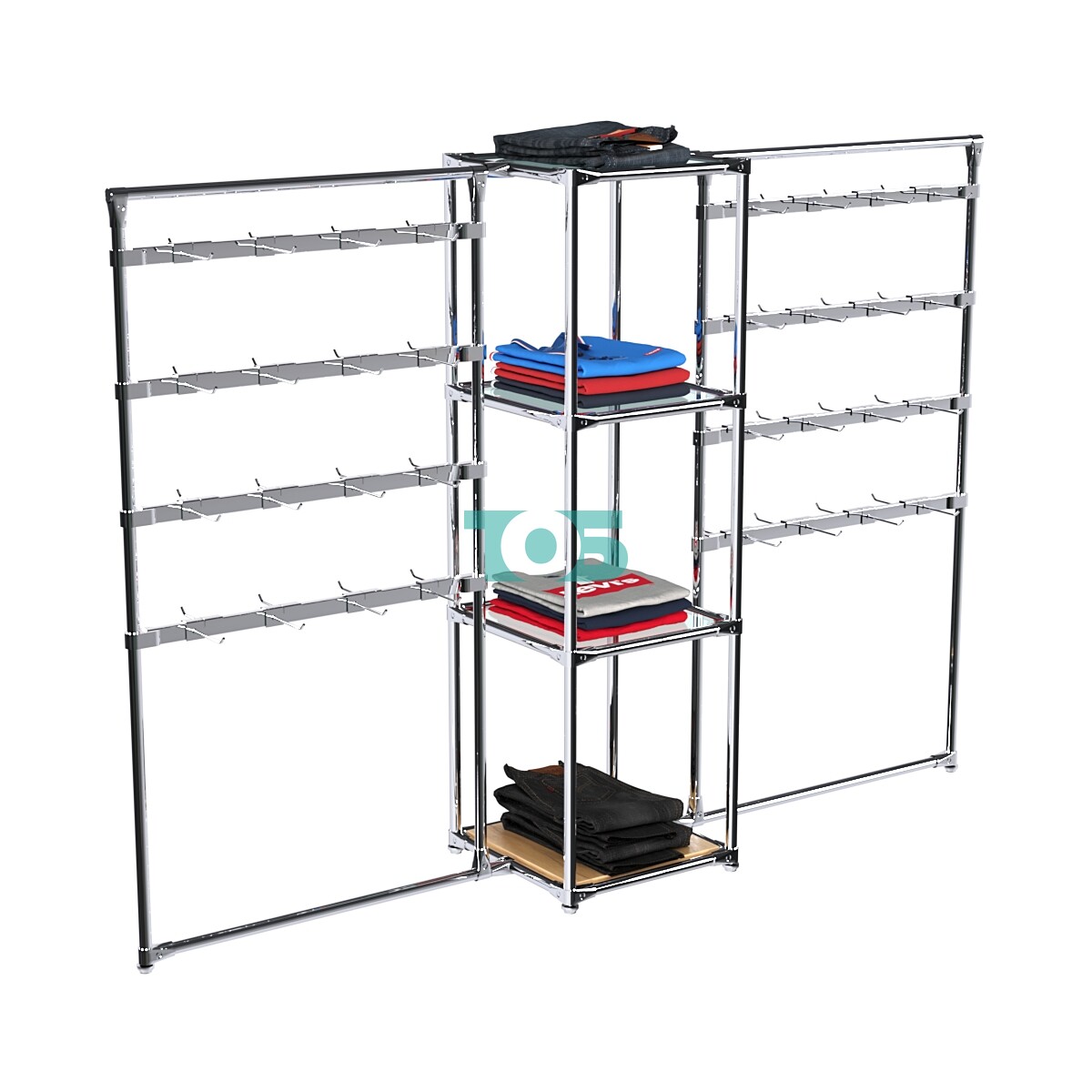 Регулируемые штанги: Можно изменять высоту штанг в зависимости от габаритов товара, а также добавлять или убирать дополнительные штанги.