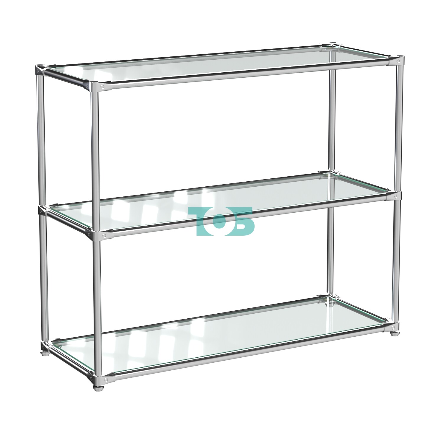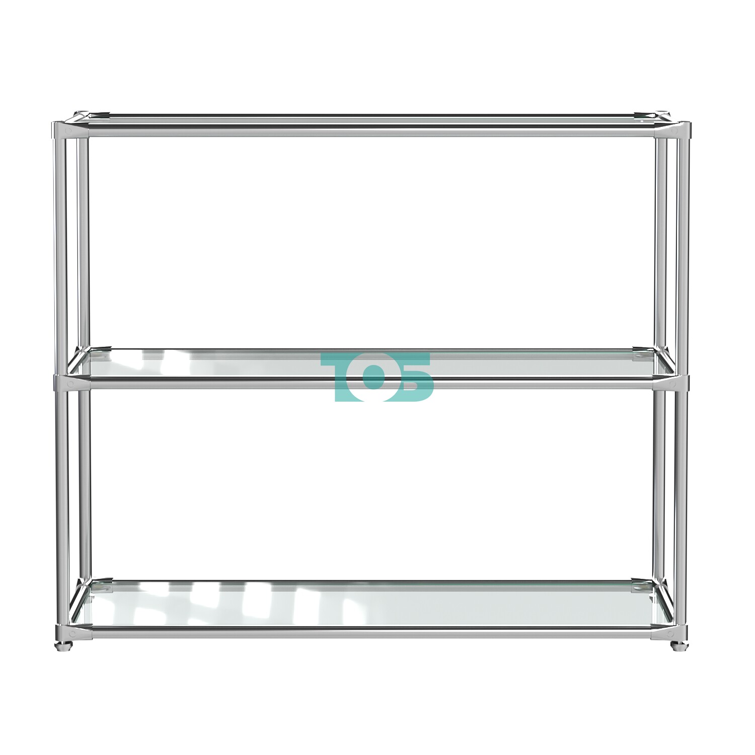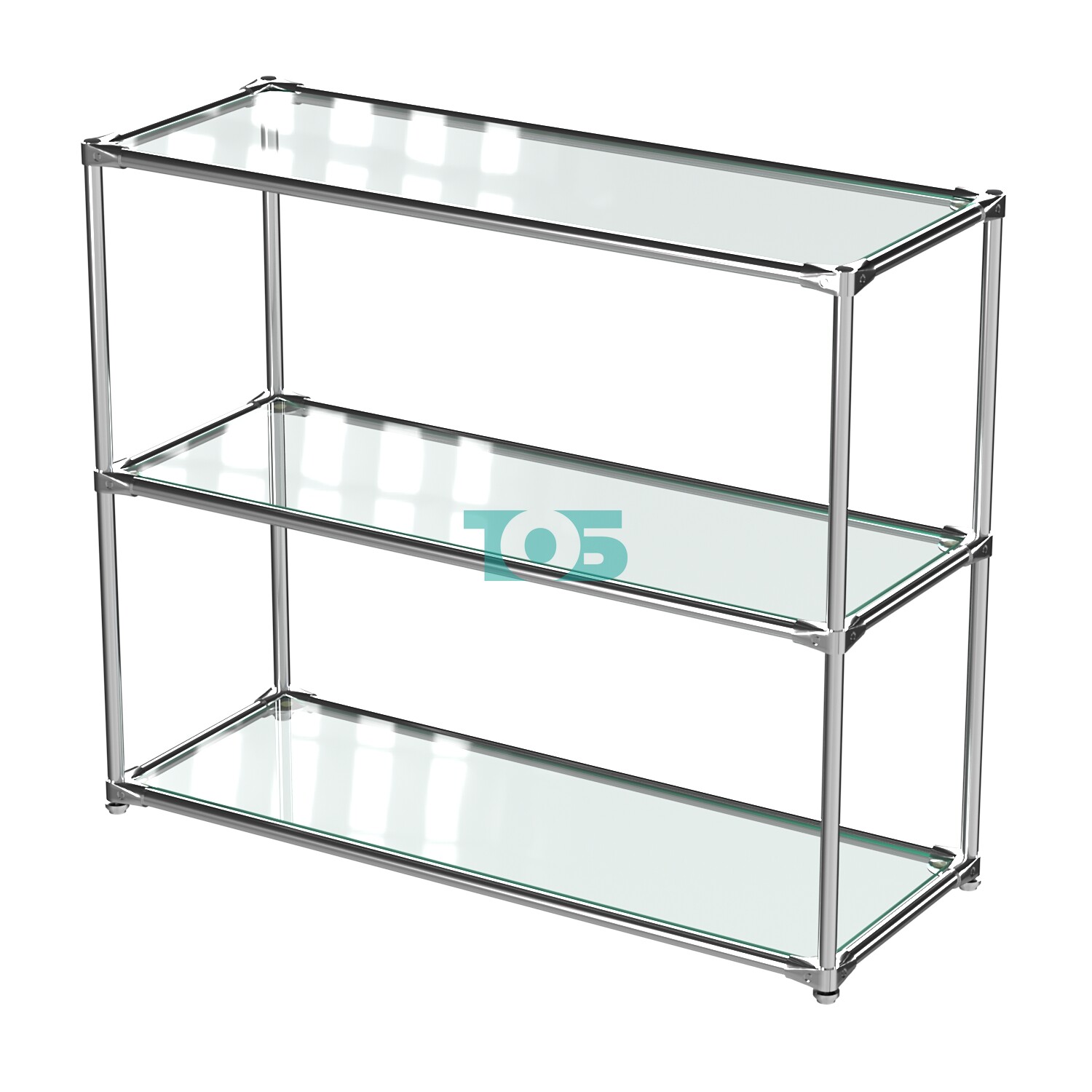 Эстетичный внешний вид: Хромированный каркас в сочетании с прозрачными стеклянными полками создают стильный и современный дизайн, который гармонично впишется в любой интерьер.