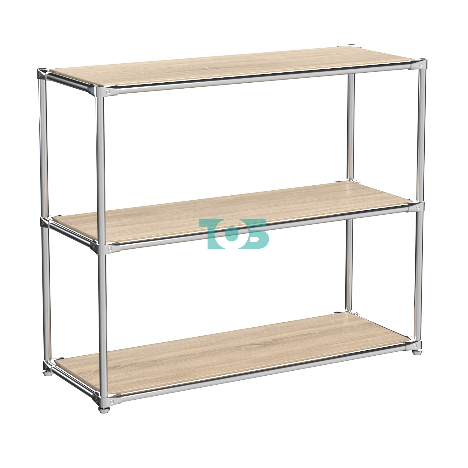 Эстетика: Хромированный каркас в сочетании с полками, стилизованными под дерево, создают привлекательный внешний вид, который гармонично впишется в любой интерьер.