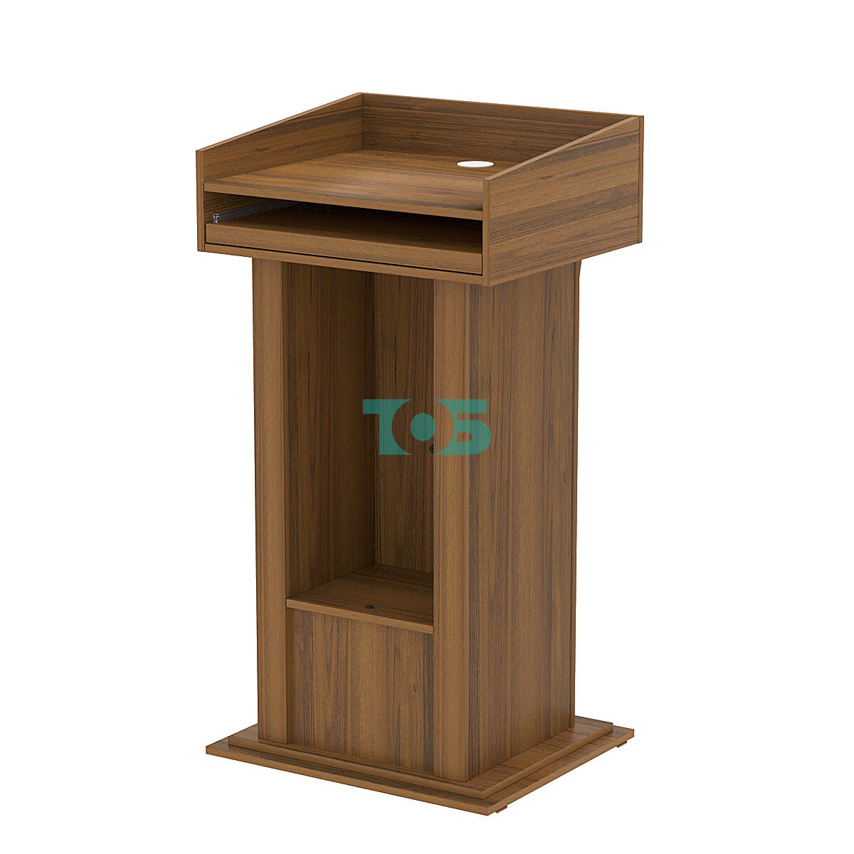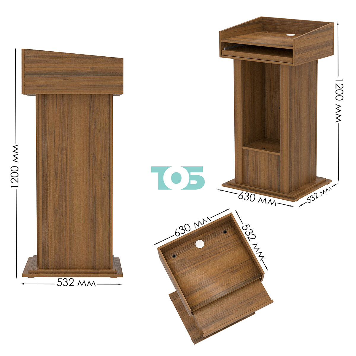 • В нижней части кафедры расположен ящик с открывающейся крышкой, где можно разместить оборудование для выступлений, такое как микрофоны, пульты управления и другие аксессуары.