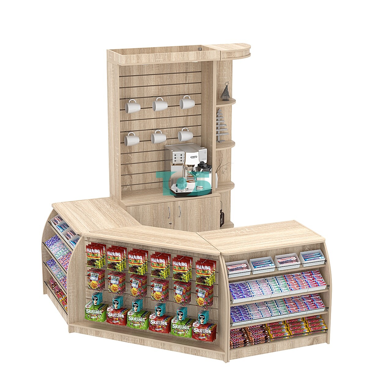 Отличия модели комплекта кассовой зоны с стеллажами под кофемашину малого №1:
