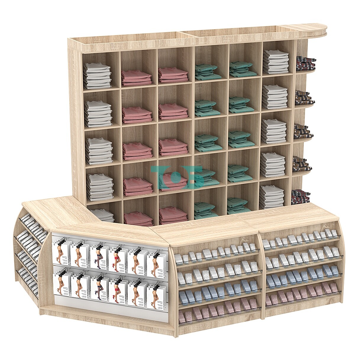 • Комплект кассовой зоны со стеллажами - ячейками средний №2, Орех