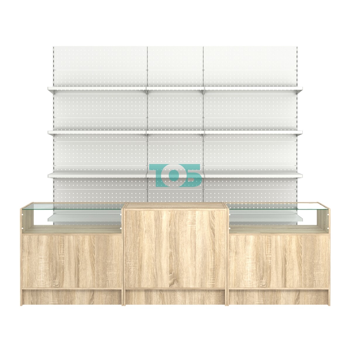 Ширина комплекта по габариту внешних прилавков составляет 2700 мм.