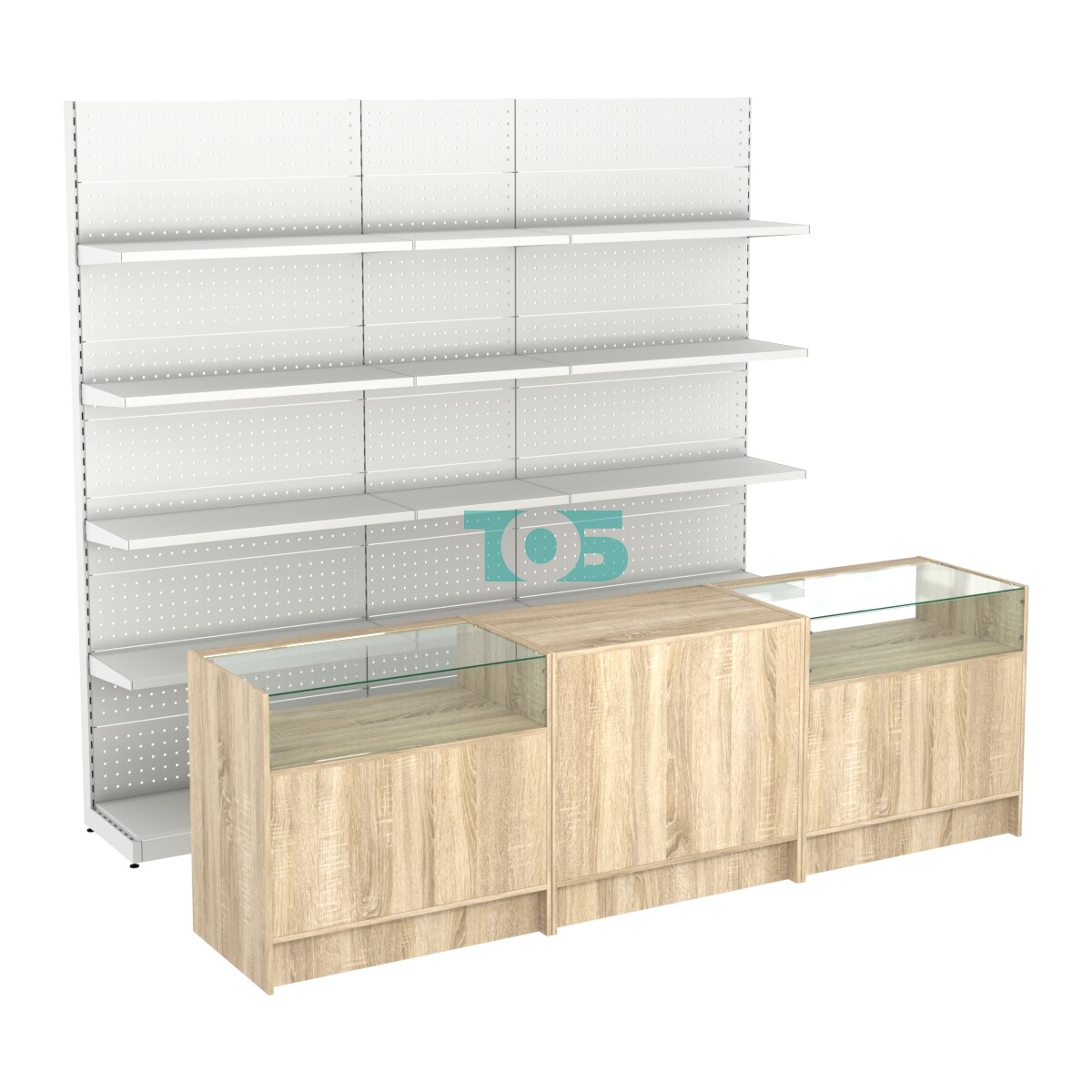 Комплект металлических стеллажей с полками и прилавков ЭК-2