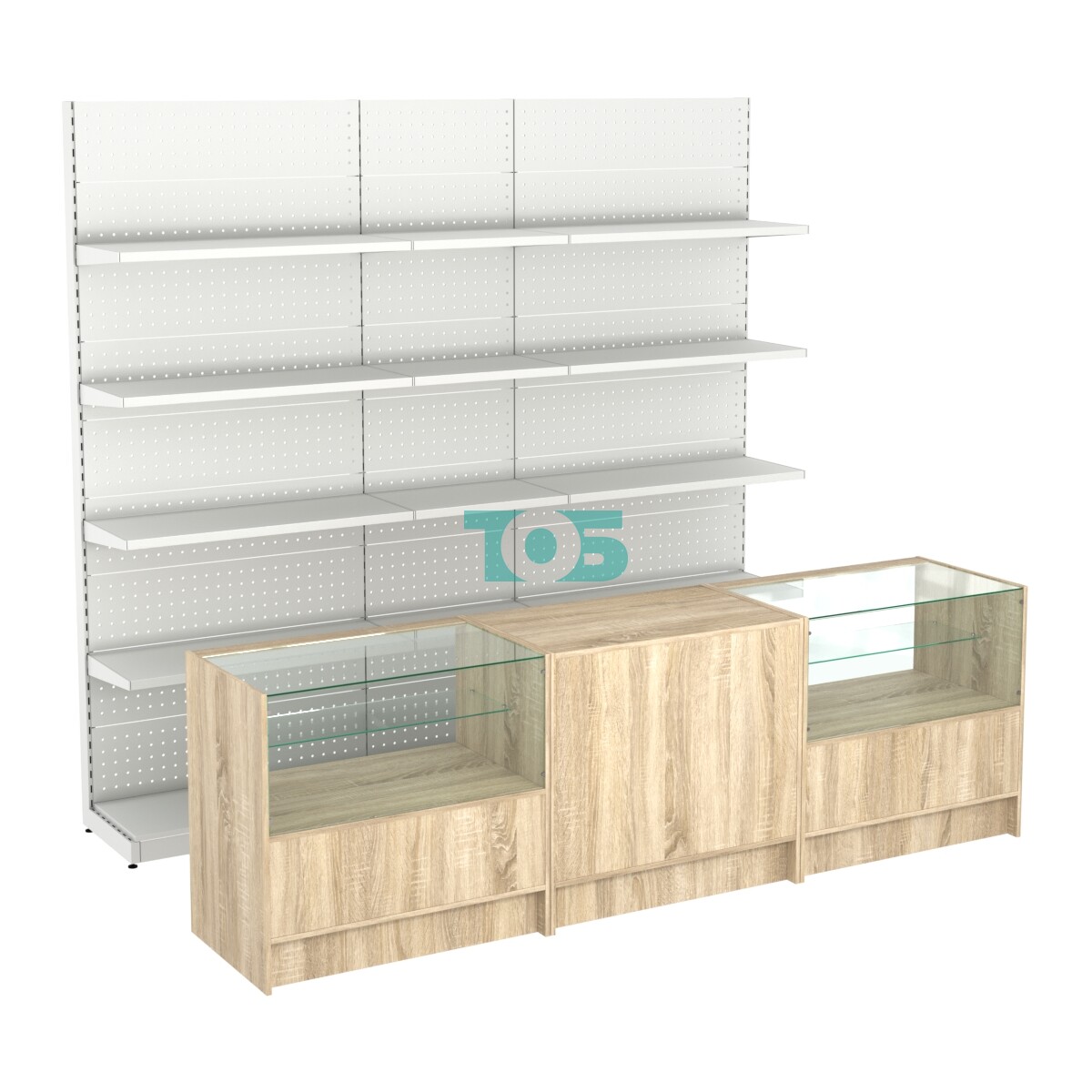 Комплект металлических стеллажей с полками и прилавков ЭК-3