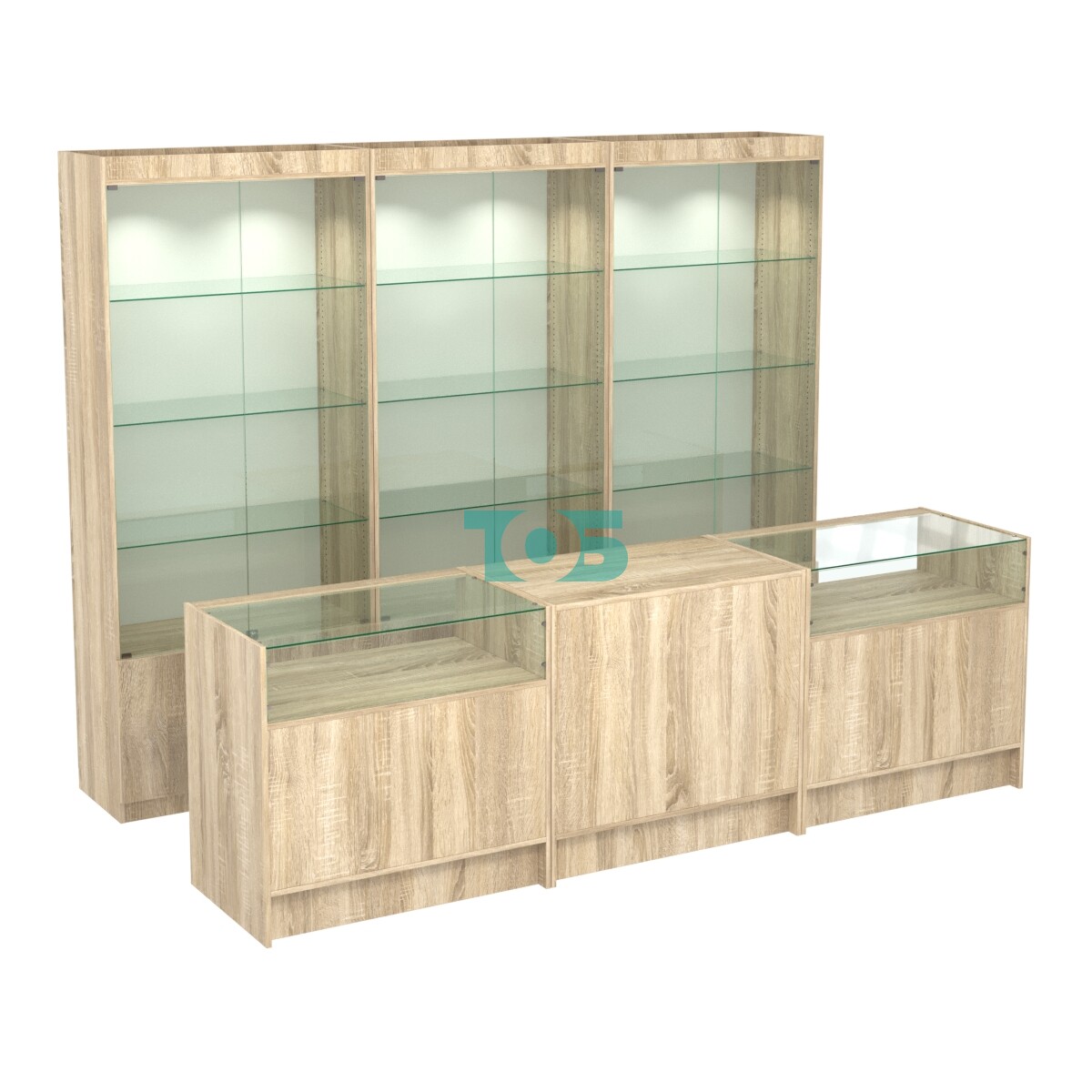 • Комплект витрин ЭК-01 и прилавков ЭК-2, Дуб Золотистый