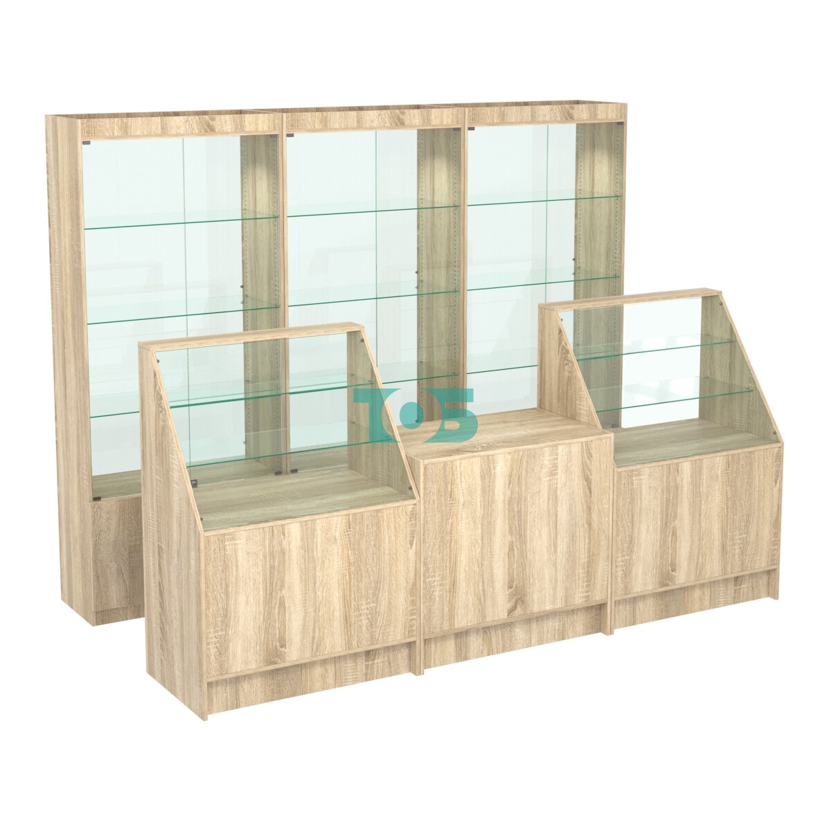 - три витрины ЭК-02 с 3-мя полками, стеклянными дверками с замком и прозрачной задней стенкой;