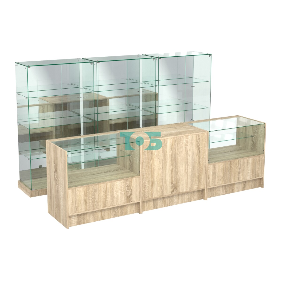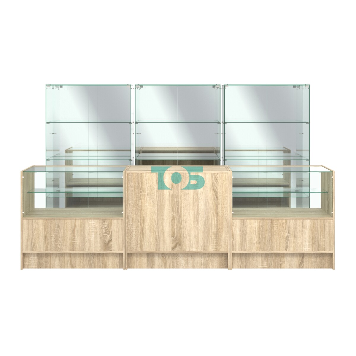 - три витрины ХП-07 с 3-мя полками, стеклянными дверками с замком и зеркальной задней стенкой;