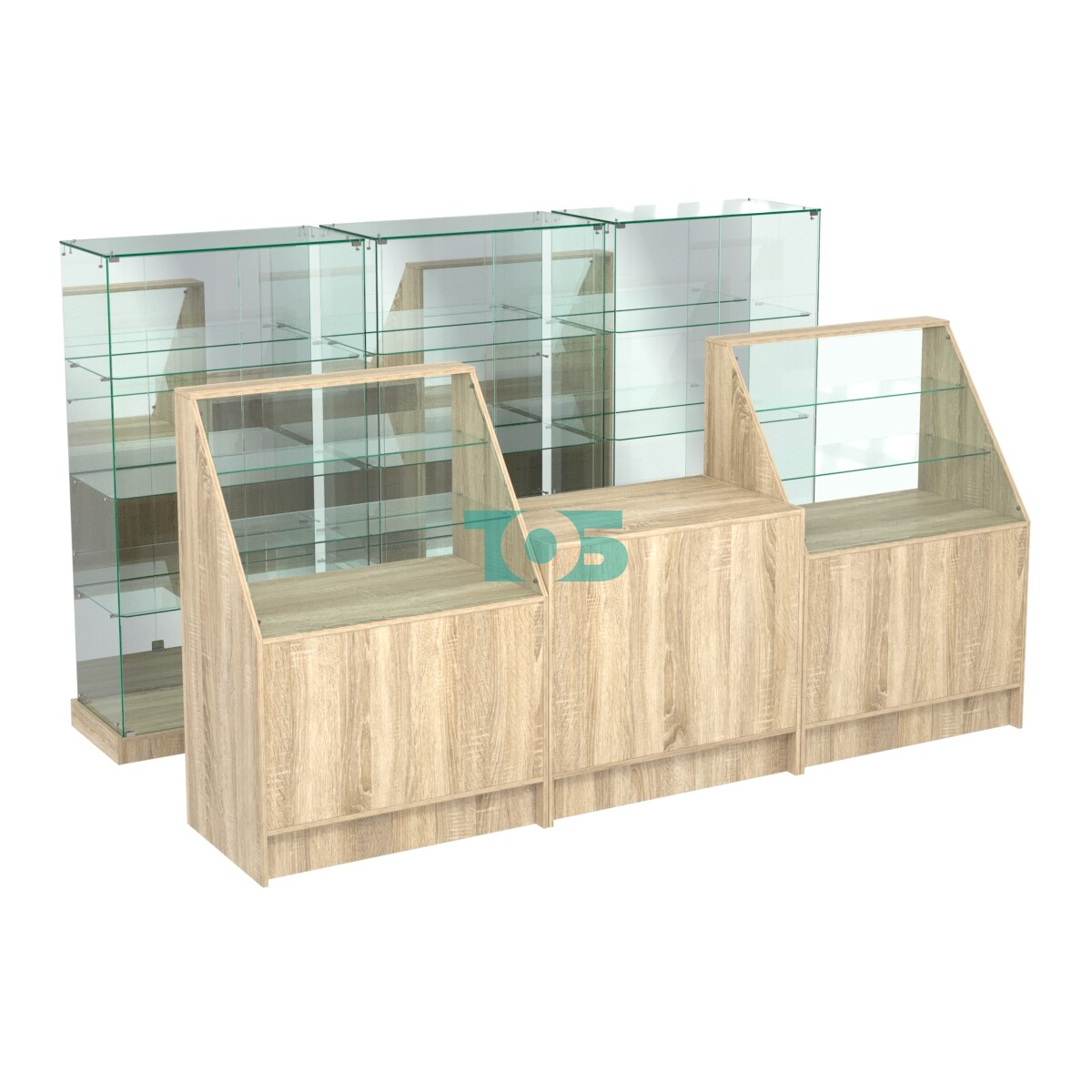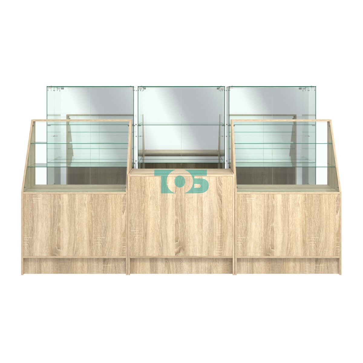 - три витрины ХП-07 с 3-мя полками, стеклянными дверками с замком и зеркальной задней стенкой;