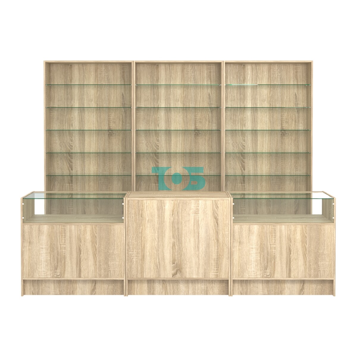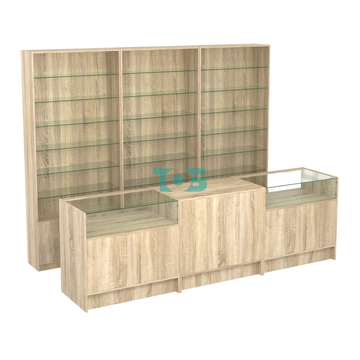 Комплект стеллажей со стеклянными полками U-6 №12 и прилавков ЭК-02