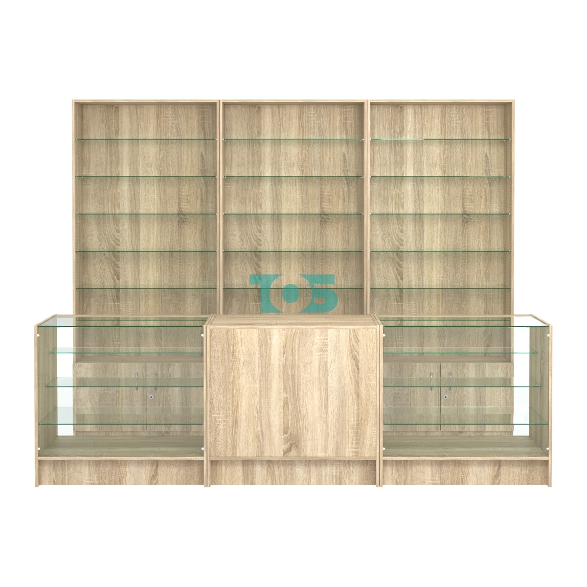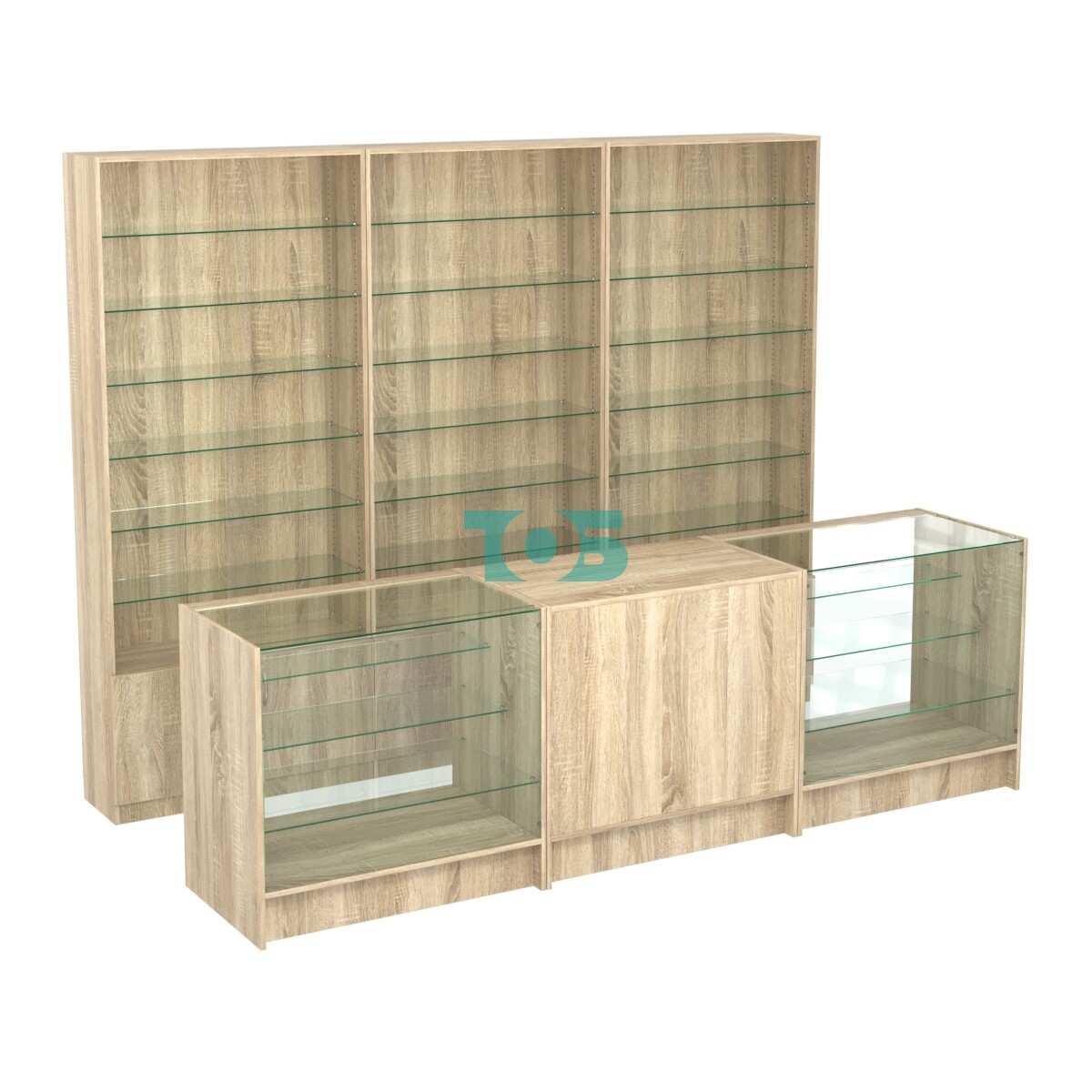Комплект стеллажей со стеклянными полками U-6 №12 и прилавков ЭК-04