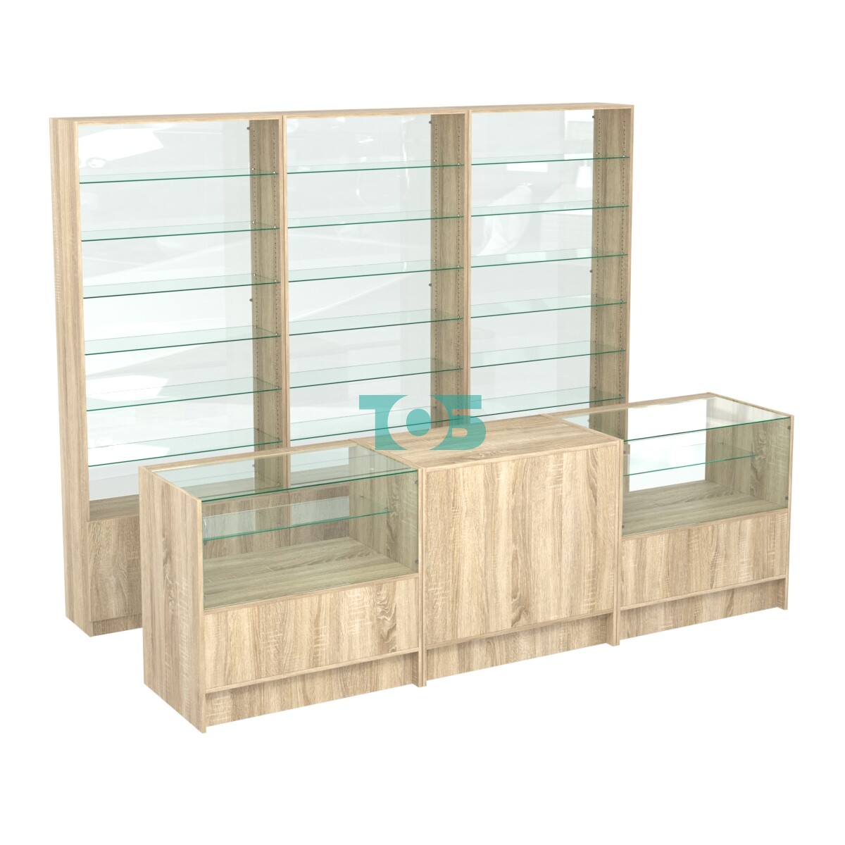 Комплект стеллажей со стеклянными полками U-6 №12-1 и прилавков ЭК-03