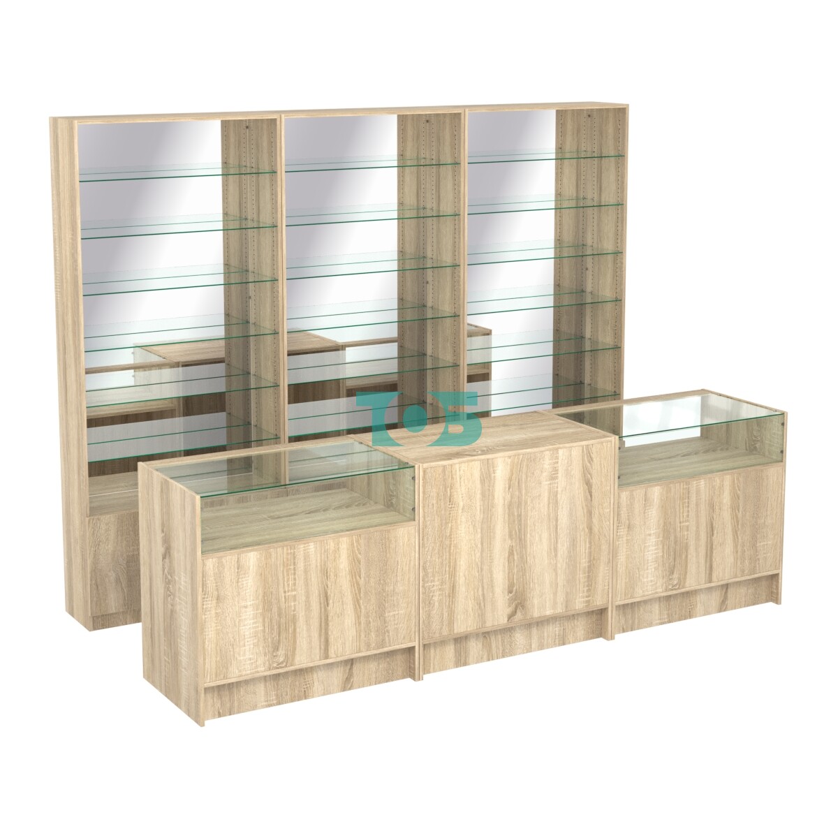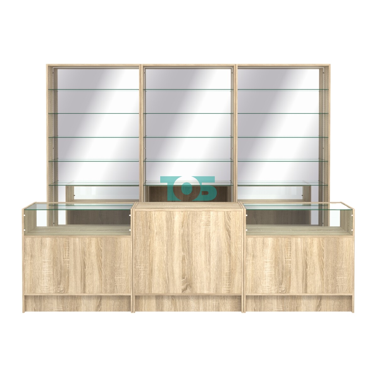 Комплект стеллажей со стеклянными полками U-6 №12-2 и прилавков ЭК-02