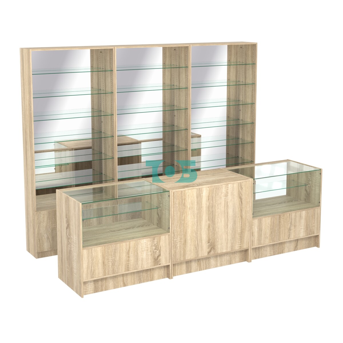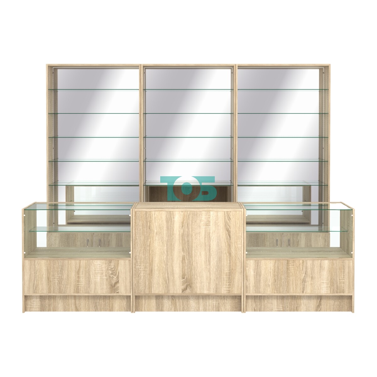 Комплект стеллажей со стеклянными полками U-6 №12-2 и прилавков ЭК-03