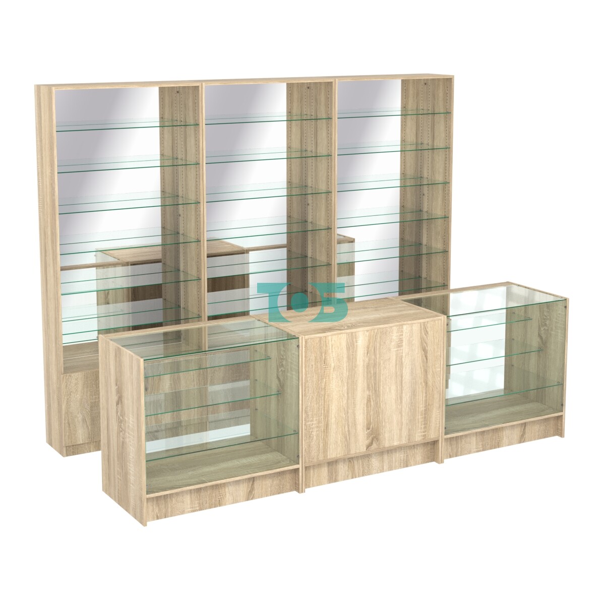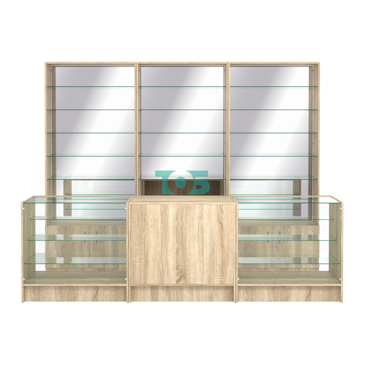 Комплект стеллажей со стеклянными полками U-6 №12-2 и прилавков ЭК-04