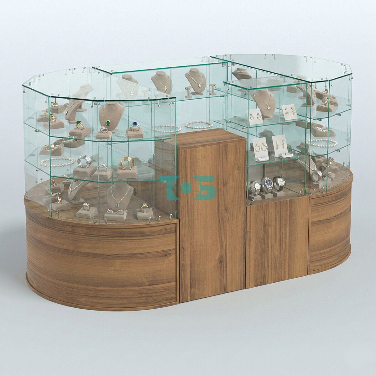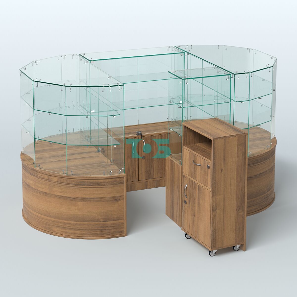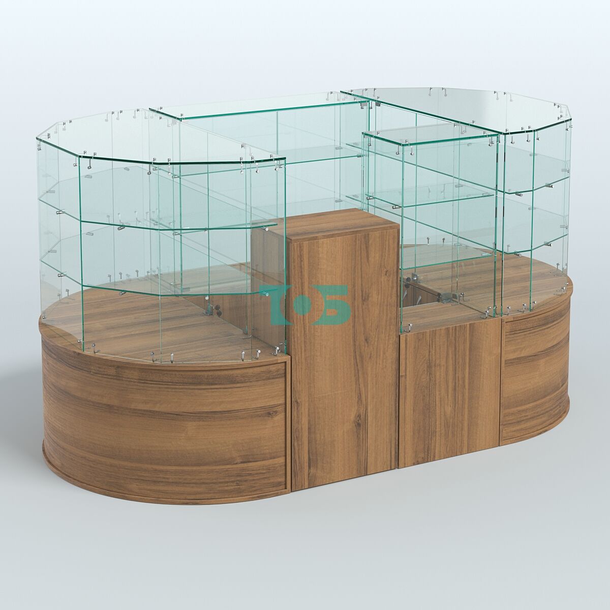 • Круглый стеклянный островок-павильон серии КОЛЬЦО с радиусными углами №1, Орех