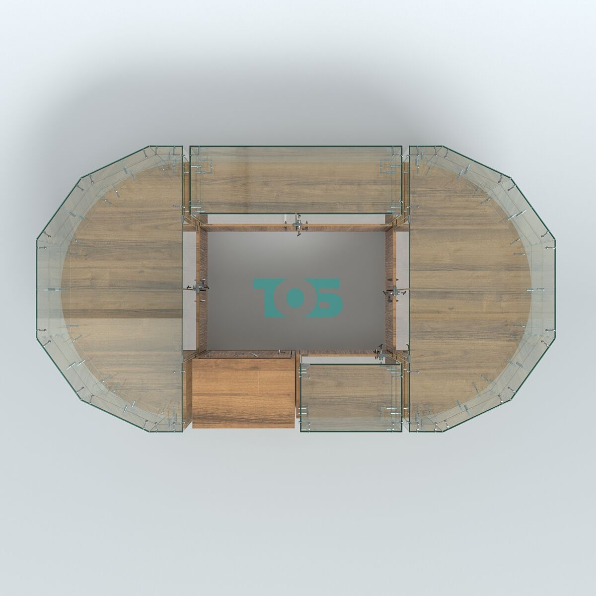 • Круглый стеклянный островок-павильон серии КОЛЬЦО с радиусными углами №1, Дуб сонома