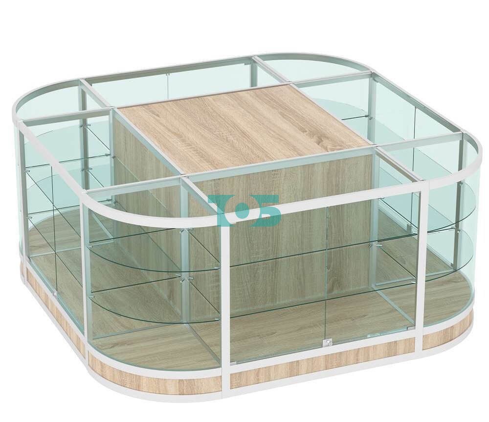 - островной прилавок полностью застеклен;