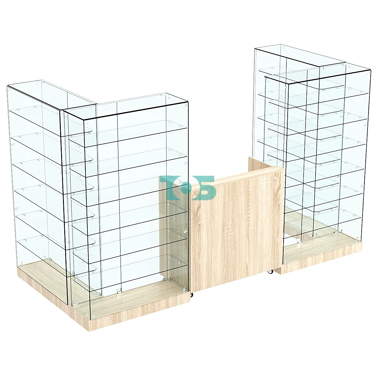 Габаритные размеры: могут быть изменены исходя из стандартных блоков витрин, что позволяет адаптировать островок под конкретные условия размещения.