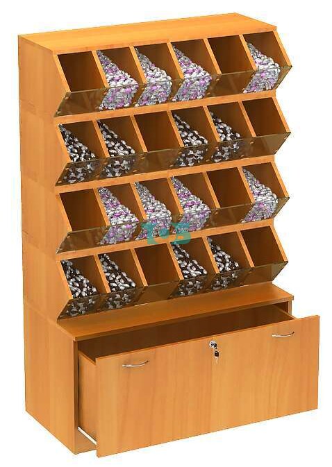 - 24 ячейки с разделителями и фасадными стеклянными бортиками;