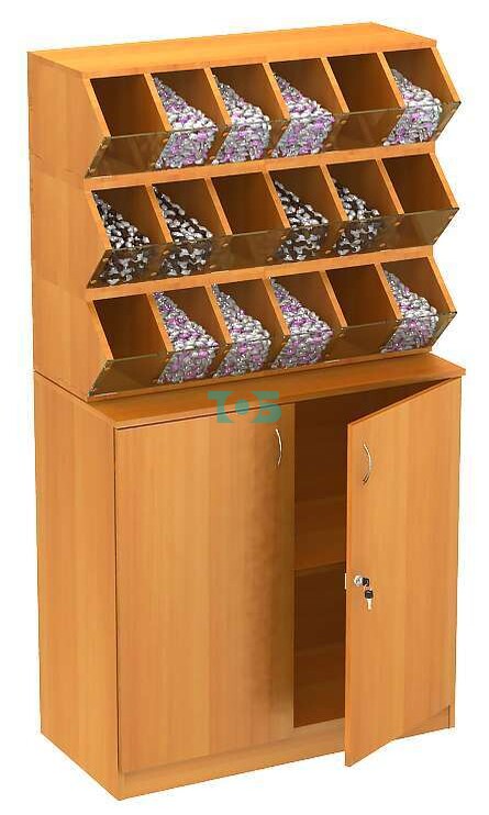 - 18 ячеек с разделителями и фасадными стеклянными бортиками;